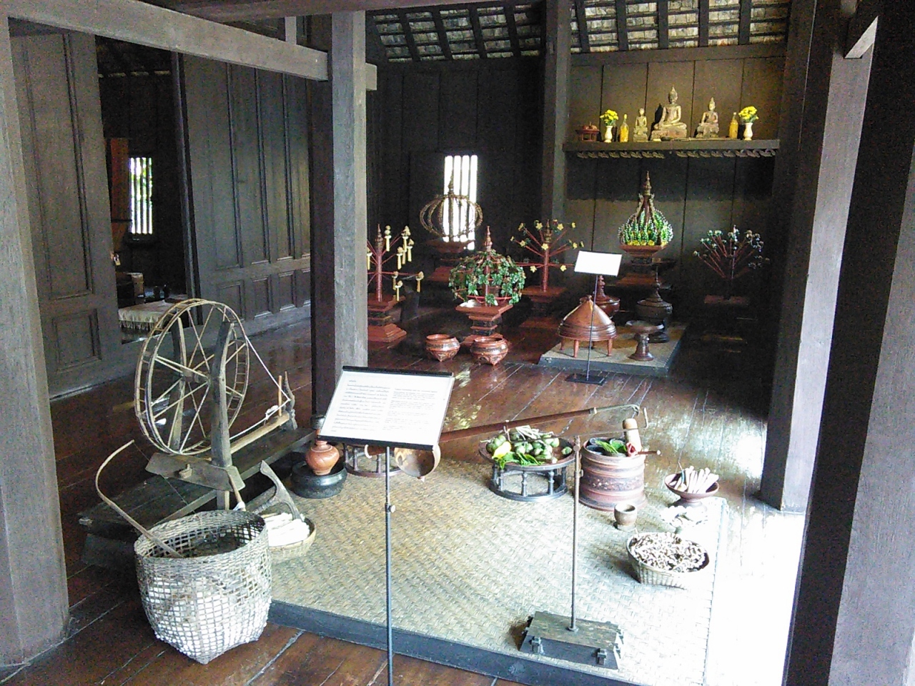 高床式の家を利用した民俗博物館です。入場料100Bですが入口にチケットカウンターはなく芝生の美しい庭を抜けた建物の下にあります。