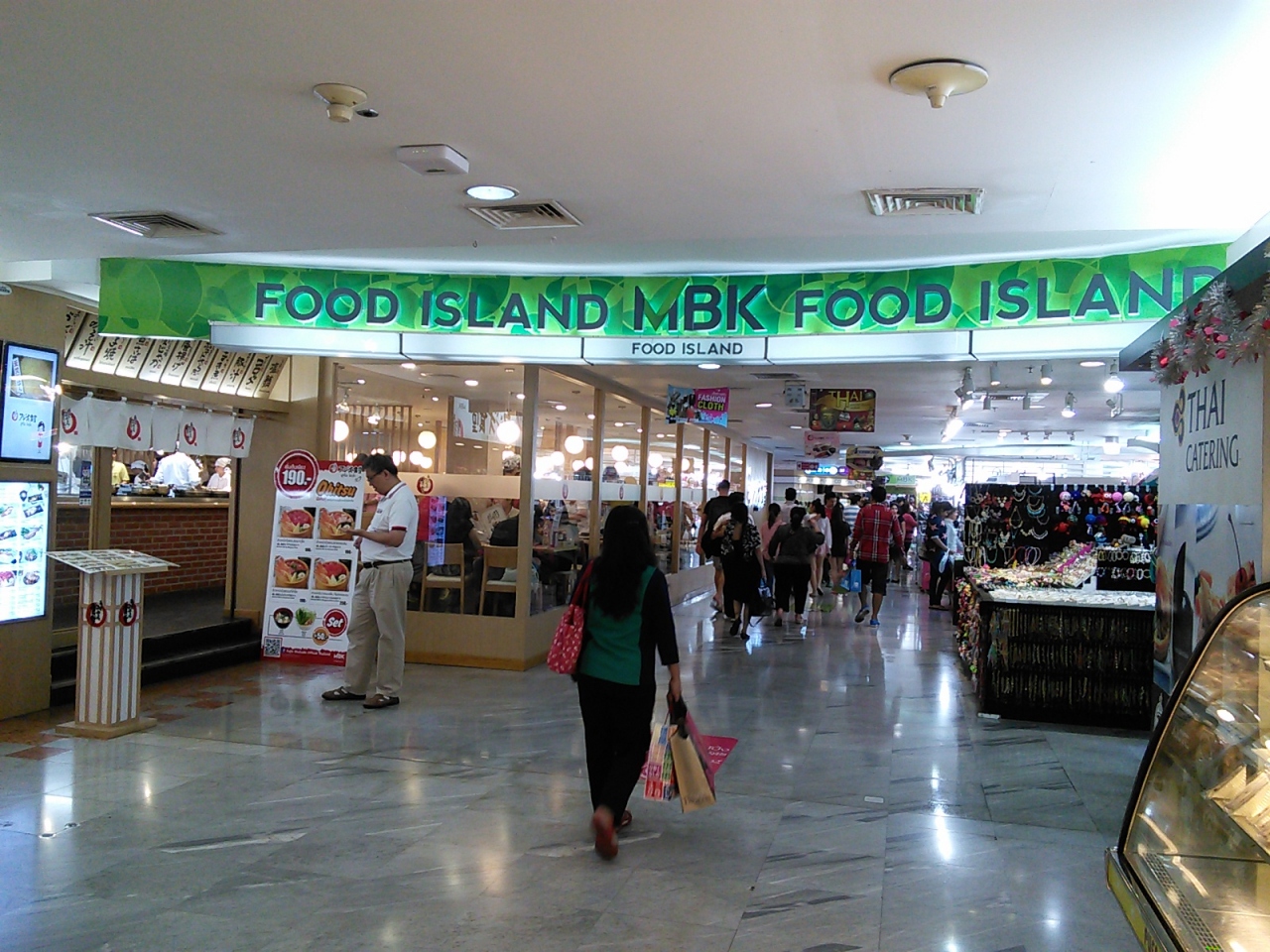 MBKのフードコートは2つあります。5Fはちょっぴり高級め、6Fは庶民派です。行くなら絶対に6Fの方が楽しいと思います。食べ物であふれています。しかし日曜日のお昼などに行くと人もあふれているので覚悟して行って下さい。メニューは40~50Bくらいからありますがタイ飯の量は少ないので2品くらいなら食べられます。サンプルや写真がある店がほとんどなので簡単に注文できます。クーポンはプリペイドカード式。専用カウンターでお金を払うとその分だけチャージされたカードをもらえます。お店でカードを出すとその金額だけ引かれます。次回来たときに残額を使ってもいいし、もう必要なければカードを返すと残金が返ってきます。