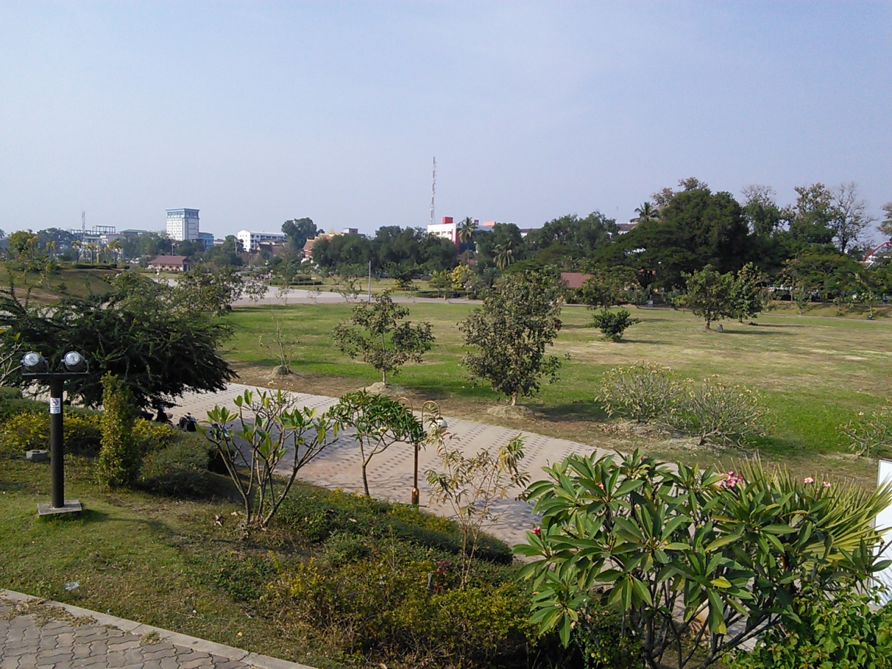 メコン川の堤防道路沿いにある広々とした東西に長い公園です。多くの部分に芝生が植えられ木陰でくつろいでいる人もいます。東の端には名前の由来となったアヌウォン王像があり、西側ではナイトマーケットが開かれ児童公園もあります。またファーグム通り沿いにはフィットネスマシンも設置されています。公衆トイレは2000kip。