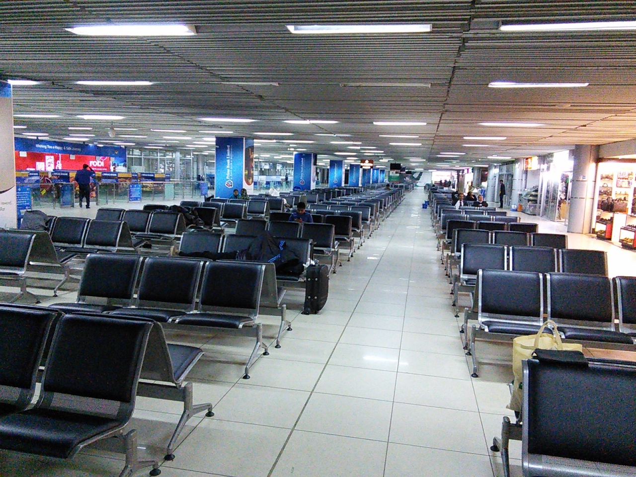 ビーマンバングラデシュ航空でカトマンズからバンコクへの移動時に経由で立ち寄りました。トランジットエリア内の印象はかなり近代的で清潔。一晩空港内で過ごしましたがベンチが数多くあり人も少なかったので“寝場所”に困ることはまったくありませんでし。空調も適温で快適でしたが蚊がいて十分には眠れませんでした。空港内にはネコが何匹かいて闊歩している様には心が和みます。アジアのおおらかさを感じられます。