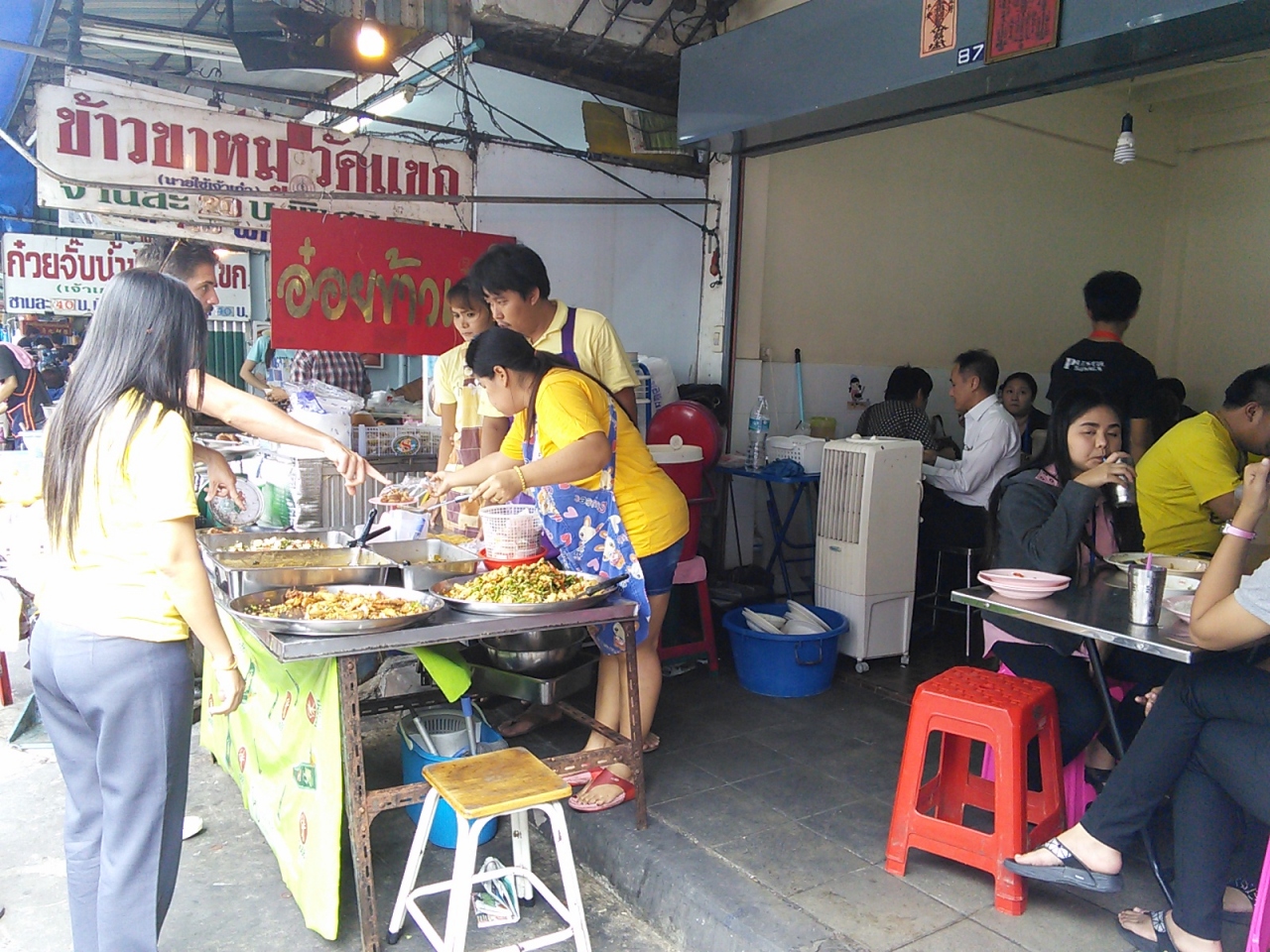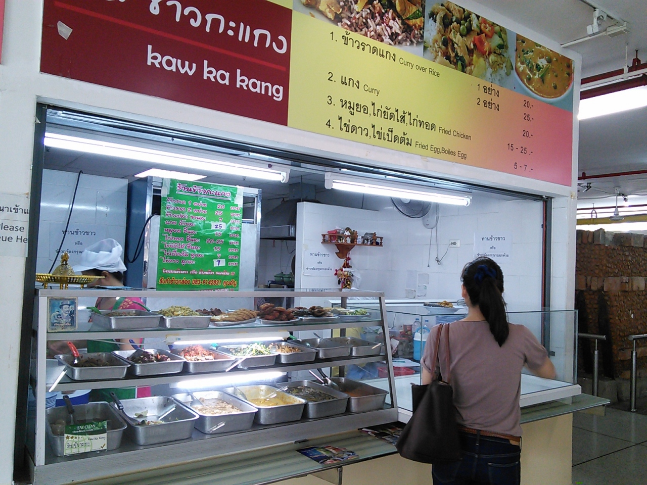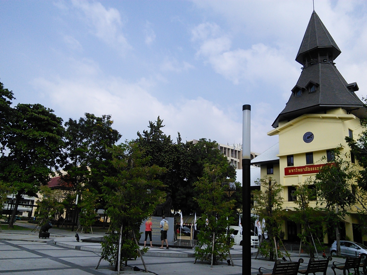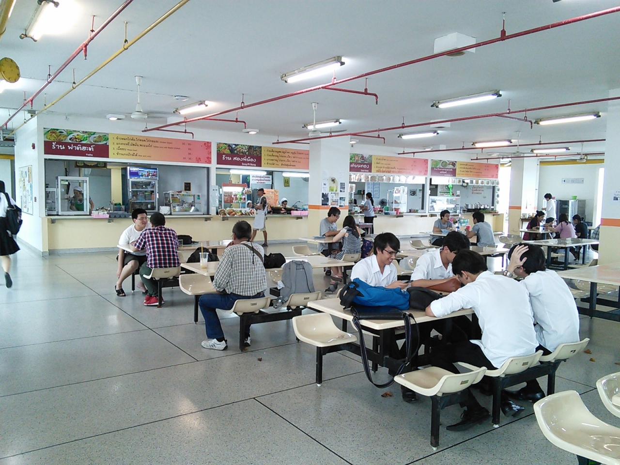 王宮前広場とチャオプラヤー川にはさまれた一角にあります。都心の大学らしく限られた敷地に建物をぎゅっと詰め込んだ感じ。我々旅行者が立ち寄るところではないように思われますが意外と利用価値はあります。まずは学食、ひろくて解放感がありとてもいいところです。いろいろなものがありますがやはり若干安め。カオ・ラート・ゲーン(いわゆるぶっかけ飯)ならおかず1種類20B、2種類25Bで食べられます。