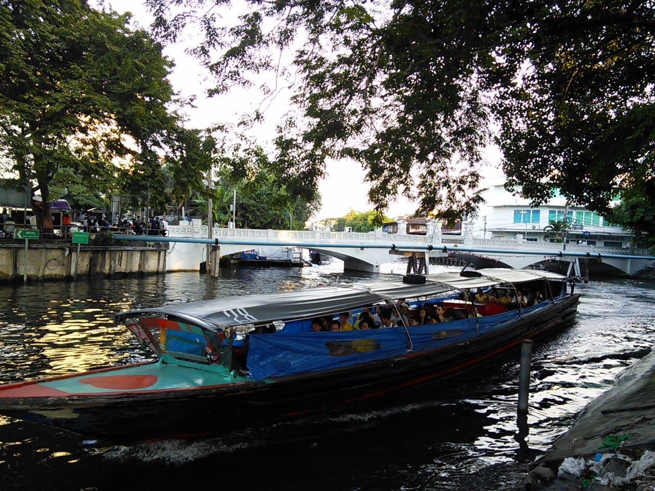 センセープ運河乗合ボートの西の起点「パンファー・リーラート」船着場の真上にかかる橋です。この橋をくぐったところでボートが方向転換するなかなか珍しいスポットでもあります。橋の上からボートが行き交うのを眺めていると“水の都"バンコクにいることを実感することかでき、私のお気に入りの場所のひとつです。