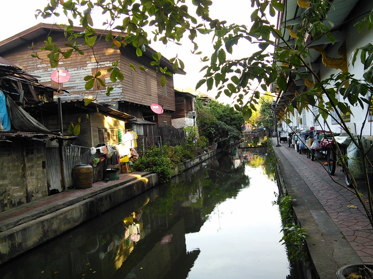ワットテープティダーラームとワットラーチャナッダーの間を流れる(実際はほとんど流れはありませんが…)小さな運河です。民主記念塔の南に位置します。大小にかかわらず運河沿いには歩道(通路)が設けられていることが多くこの運河も例外ではありません。民家の軒先を通ったり時には民家の中?を通ったり生活感あふれる場所を散歩できます。水ははっきり言って汚ないですがそれでも水辺を歩くと気持ちがいいものです。他にもバンコクには多くの運河があります。自分のお気に入りの“運河道"を探すのも楽しいと思います。