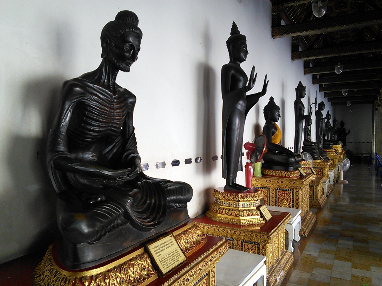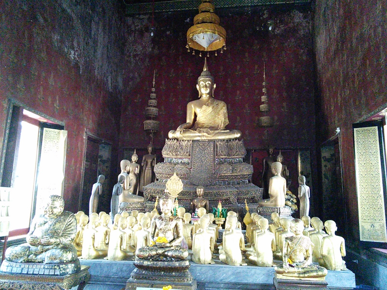寺院内を散策していたらひとりの僧侶に出会い本堂に案内されわざわざ鍵を開けて中に招き入れてくれました。御本尊に向かって小さないくつもの像が拝んでいるという珍しい光景が見られます。バンコクにあるとは思えない素朴さの残る寺院です。- 旅行時期