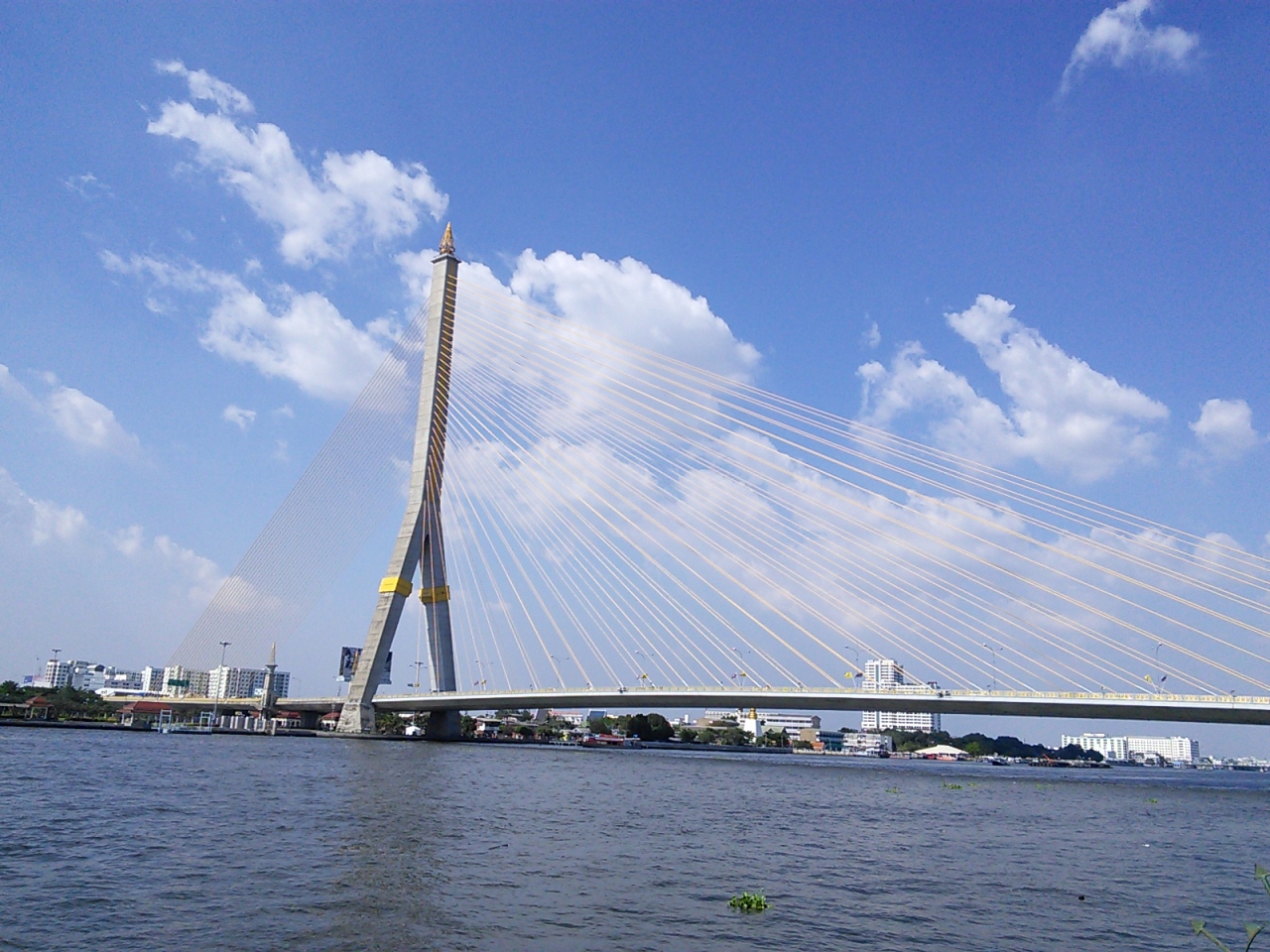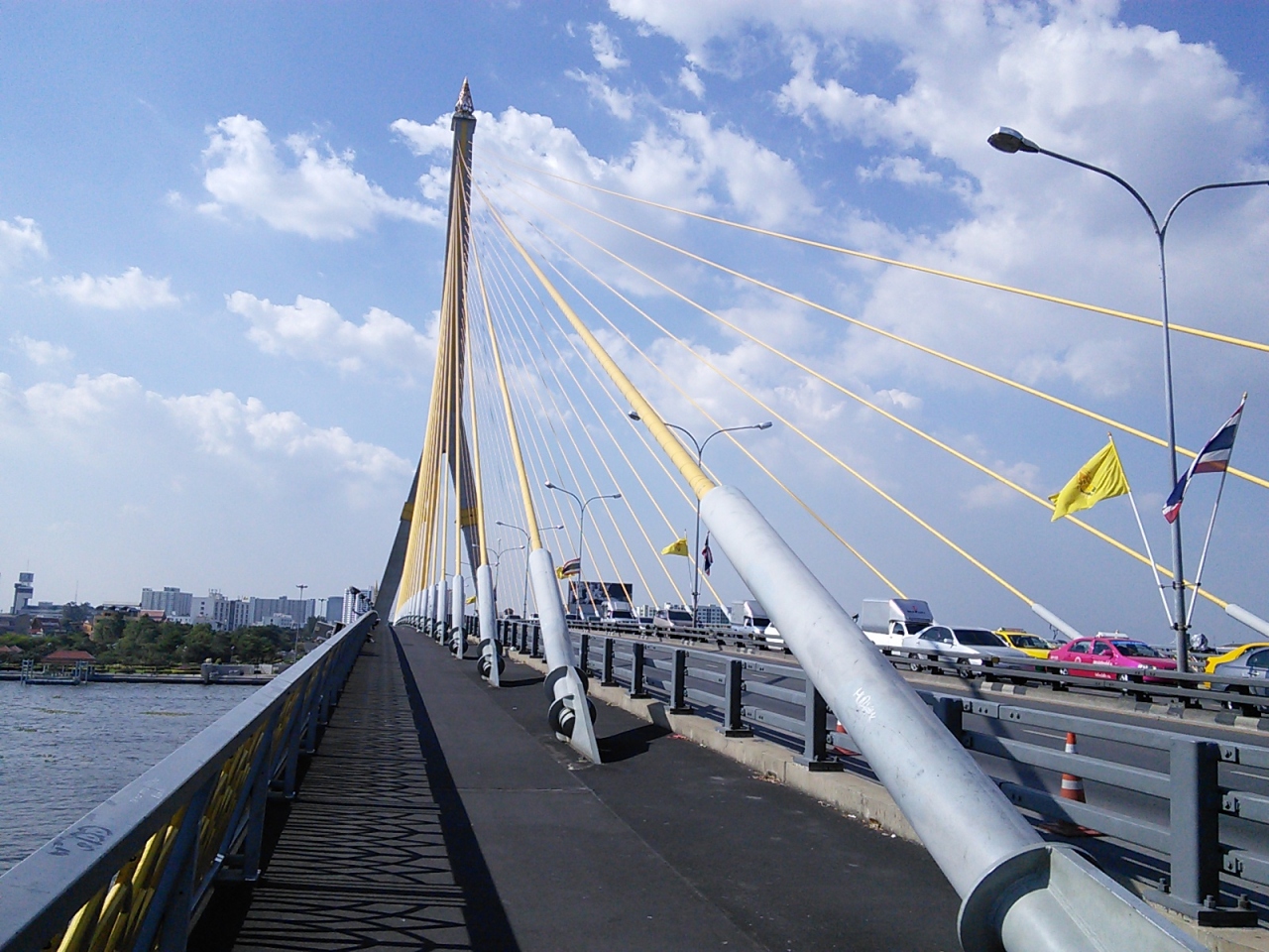 旅行者としてバンコクを訪れてもまず渡ることのない橋だと思います。しかし目にしたことのある人は多いはず。王宮前広場からでもちらっと見えます。主塔から伸びた鮮やかな黄色のケーブルが芸術的でチャオプラヤー川にかかる橋の中で最も美しいと思います。