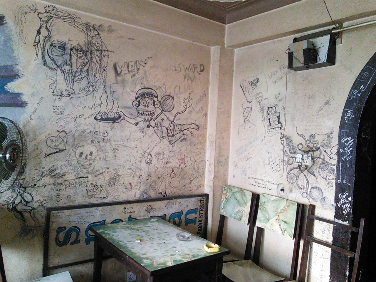 フリークストリートにあるレトロな雰囲気を残すカフェです。外観からしてなかなか味があります。入口横のショーケースにはおいしそうなケーキが並んでいて店内もかなりシブめ、薄暗く落ち着いていて時間が止まったような錯覚を感じます。Cream Caramel(100Rs)のオーダーを済ませ2階席へ。この2階席がまたすごい。壁は落書きだらけでサイケな絵も書かれています。さて肝心のCream Caramelですがまさに絶品!いわゆるプリンですが上品な感じと言うよりちょっと不格好で手作り感があふれ少し固め。甘いカラメルソースが抜群のうまさで評判通りのおいしさでした。ケーキ類は食べていませんが十分期待できそうです。200%おすすめのカフェです。