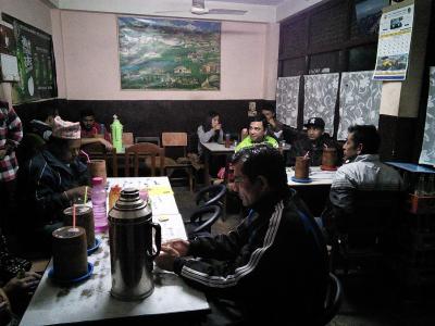 レストランチックなローカル食堂です。サンドイッチやマカロニ、ステーキなどの洋食系からチベタン、チャイニーズ、ロティ&カリーのインド系とメニューはかなり充実しています。ネワール料理もあり珍しいチャタマリ(ネワール風お好み焼)もありました。