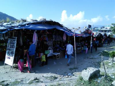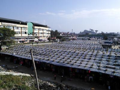 広大なナヤバスパークに隣接するバザールです。主に衣料品などを売っているバラック建てが目を引きます。通路の屋根はブルーシート、床は地面の土というあり様です。道路をはさんだ向かいには鉄筋コンクリート4F建てのモール(デパート)があります。このギャップがネパールらしいとこですが経済発展の著しいカトマンズ、近いうちにバラック建てのバザールもなくなると思います。今のうちに見ておくのもいいと思います。