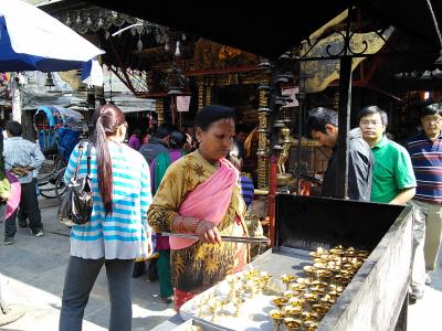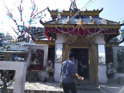 タメルからスワヤンブナートに行くときに通る橋「Sobhavagbati Bridge」を渡ってすぐを右折、100mほど行った左側にあります。入口の白壁の前に“お参りセット”を売る店があるのでわかると思います。お参りに来る人はちらほらいましたが外国人旅行者は珍しいのか「ここはスワヤンブナートじゃないけど大丈夫か?」としきりに言われました。寺院自体は小さくあっという間に見終わってしまいます。本堂にはドゥルガー神が祭られています。