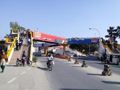 ダルバールマルグ通りの大きな交差点に掛かる歩道橋です。白と黄色のカラーリングがかわいらしくちょっと渡ってみようかなという気持ちにさせせくれます。カトマンズ市内は交通量が多いわりには信号機が少なく道路を渡るのに怖いところもあるので旅行者にとっては強い味方です。歩道橋の上に意味もなくぶらぶらしてる人達と一緒に時間をつぶしてみるのも楽しいかと思います。