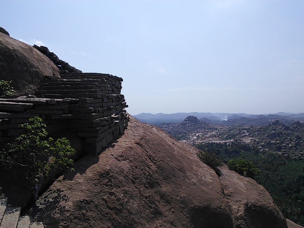? ハンピバザールを東に進み、ナンディー像のある石段の手前を右へ、50mほど進むと「WAY TO HILL」と白ペンキで矢印の書かれた岩があるので左へ。そこから本格的な階段が始まります。