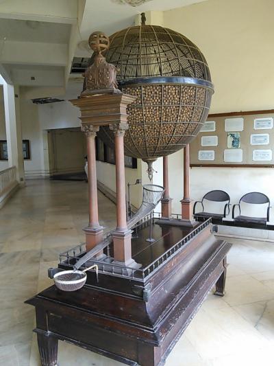1Fには彫刻、キリストの像、印刷の機械などが展示されゴア州の動植物が写真や模型を使って紹介されています。2Fには古い家具、楽器、生活用品、コインなどがあります。個人的にイチオシなのが2Fにあるポルトガル時代のロタリー(宝くじ)の抽選機。五桁の数字を決めるために00000~49999の数字の書かれた木で作られた5