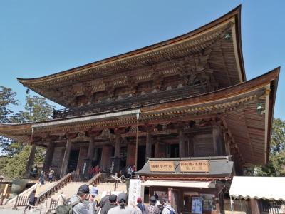 まさに圧巻の姿です。修験道の総本山で吉野山の象徴とも言えると思います。実に横幅45m、高さ34mの巨大さで木造建築としては東大寺の大仏殿に次ぐ大きさだそうです。もちろん国宝に指定されています。これは一見の価値ありありです。