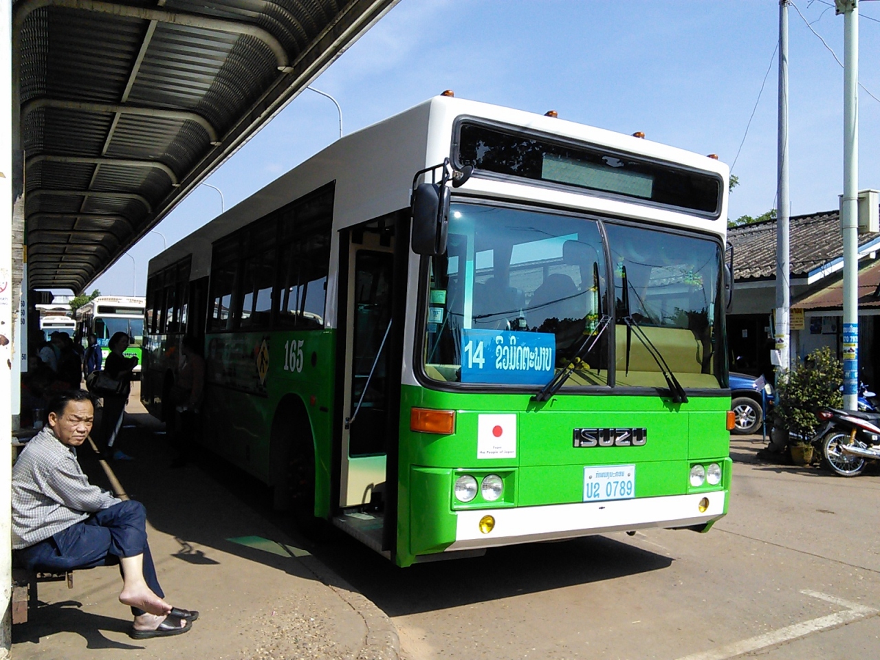 タラートサオバスターミナルから友好橋行きの14番のバスに乗ります。運転手にビアラオ工場と言えばわかりますがよく忘れるので車掌や周りの人にアピールしといたほうがいいです。片道6000kip。