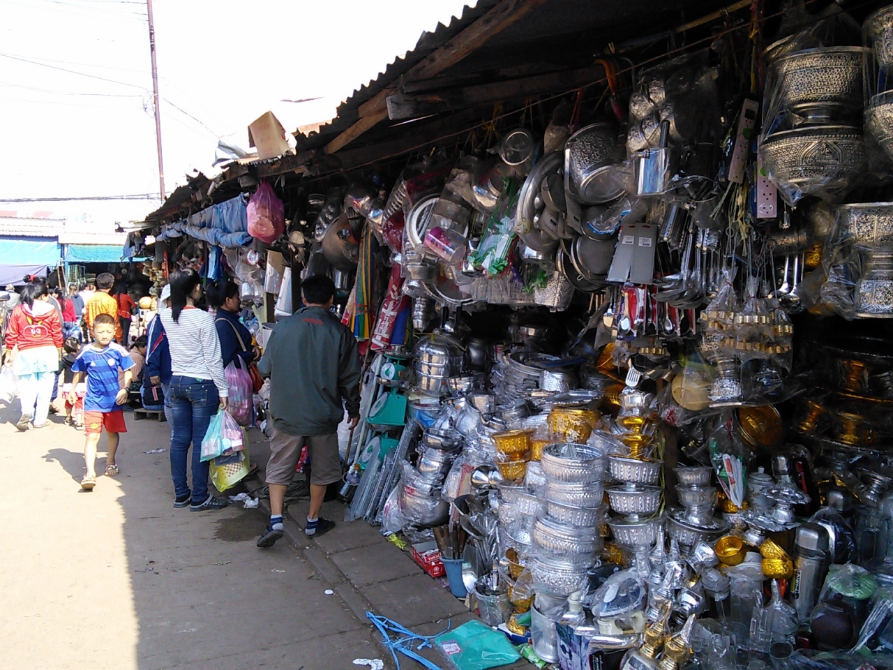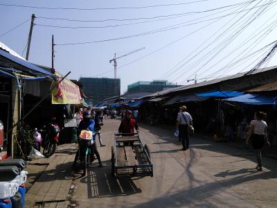 タラートサオバスターミナルの敷地から直接入ることのできる市場です。発展著しいビエンチャンの中心にまだこのような規模のバラック建ての市場が残っているのには驚かされました。現在同じ敷地内に新しい市場を建設中です。3年後にはバスターミナルを1階にした大きなものになるようです。今のうちに古き良きビエンチャンを体感しておいたほうがいいと思います。