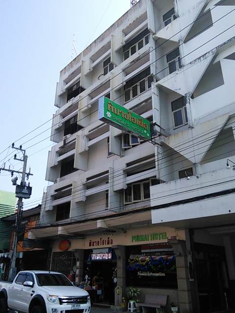 ナコーンラチャシマーへの発着のバス停のすぐ横なのですごく便利です。