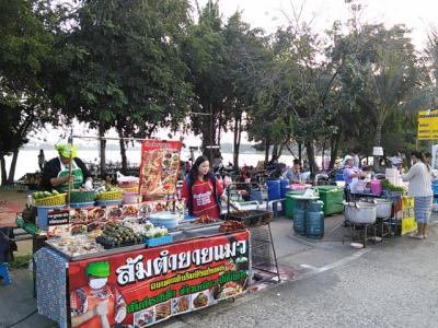 市街の南に位置する広大な湖。湖畔の公園には夕方になると数多くの屋台や露天が並びます。バスケットやフットサルコート、スケボーのコースなんかもあり若者がいい汗かいてます。屋外ステージではもちろんエアロビもやっています。コーンケン市民の憩いの場になっているようです。