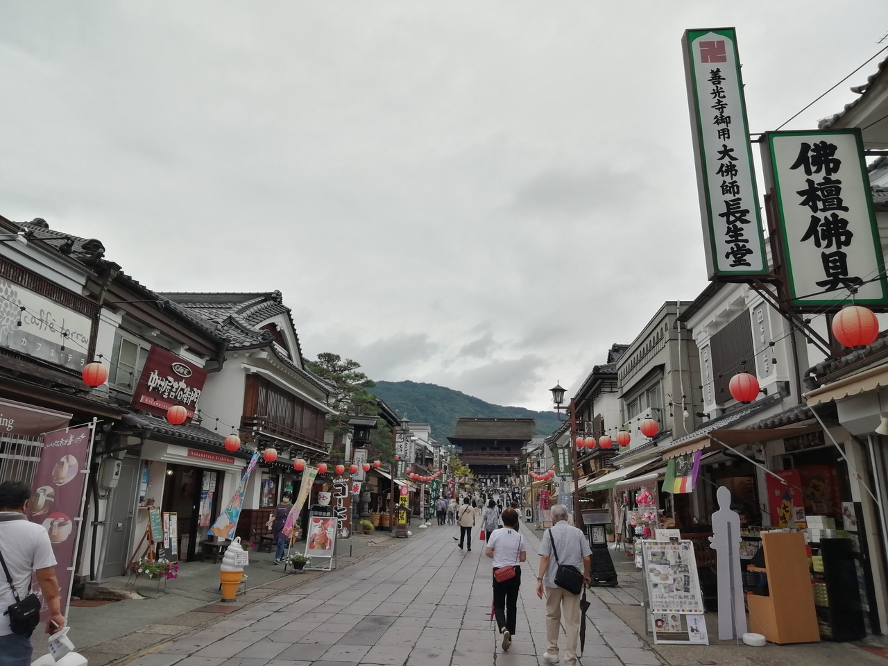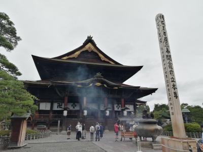 いや~スケールでかいです。仁王門に山門、本堂、どれも立派で圧巻の迫力!しびれました。そして“牛に引かれて善光寺詣り”で知られる牛ちゃんも境内案内所で発見!なでなで。本堂前には今年行われた“御開帳”時に建てられた回向柱がまだ残されており、こちらもなでなでして御利益いっぱいもらいました。