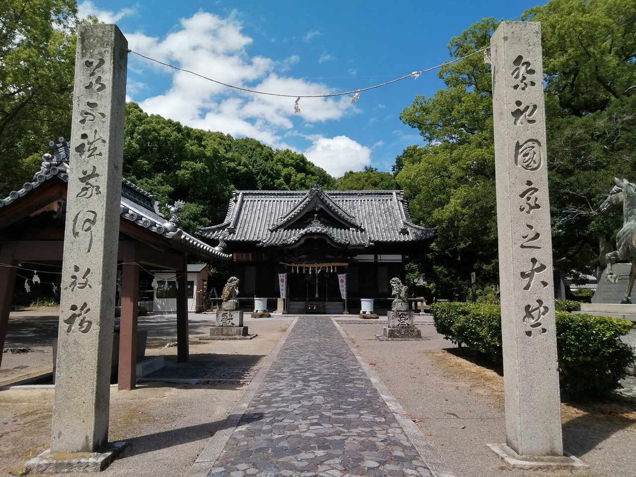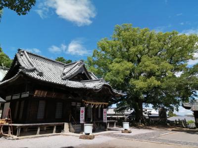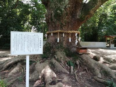 鬱蒼とした森の中にあり、霊験あらたかな雰囲気が漂っています。その源となるのが御神木であるクスノキの古木。県の自然記念物に指定されいて、幹周約8m、樹高30mの巨木です。神社が創建された1073年にはすでに自生していたという伝えがあり、樹齢1000年ほどと推定されます。とてつもないパワーを感じます。