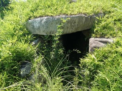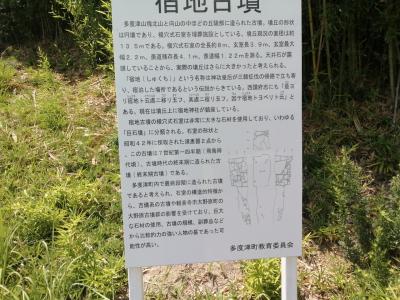 多度津町郊外の片田舎にある古墳。一応、宿地神社の下にあります。古墳時代末期に造られたもので直径13mほどの円墳。大きな石を使用しており、“巨石墳”に分類されるようです。神社の横にも巨石がゴロゴロしています。
