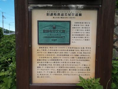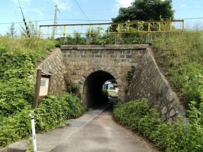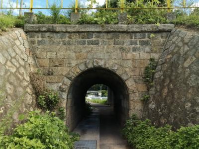 旧讃岐鉄道の…とありますが現役のJR予讃線の架道橋でもあります。旧讃岐鉄道の数少ない現存構造物です。場所は宇多津中学校の北側。一見すると見過ごしてしまいそうなただの石造りのアーチ橋ですが、由緒板があるおかげで貴重なものだとわかります。
