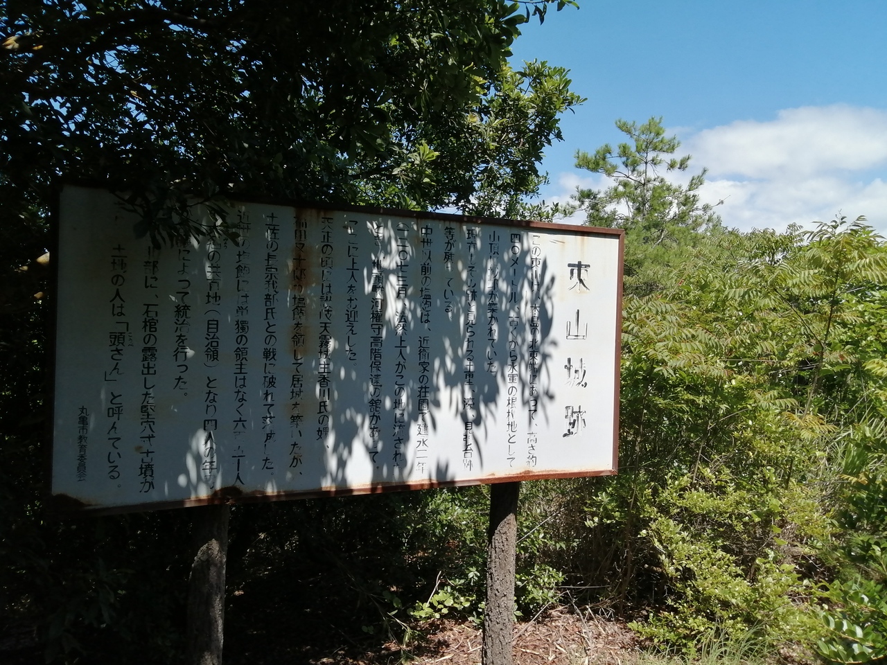 塩飽水軍の本拠地にもなっていた城です。登り口は東小路、専称寺へ上がる階段の30mほど南。登り口の階段を登るといきなり道が途絶えますがとにかく左方向に進んで下さい。そして道なりに5~6分登ればたどり着きます。しかし由緒看板しかありません。木々に遮られ眺望もなし。冷やかしで行っても楽しくはないと思います。- 旅行時期
