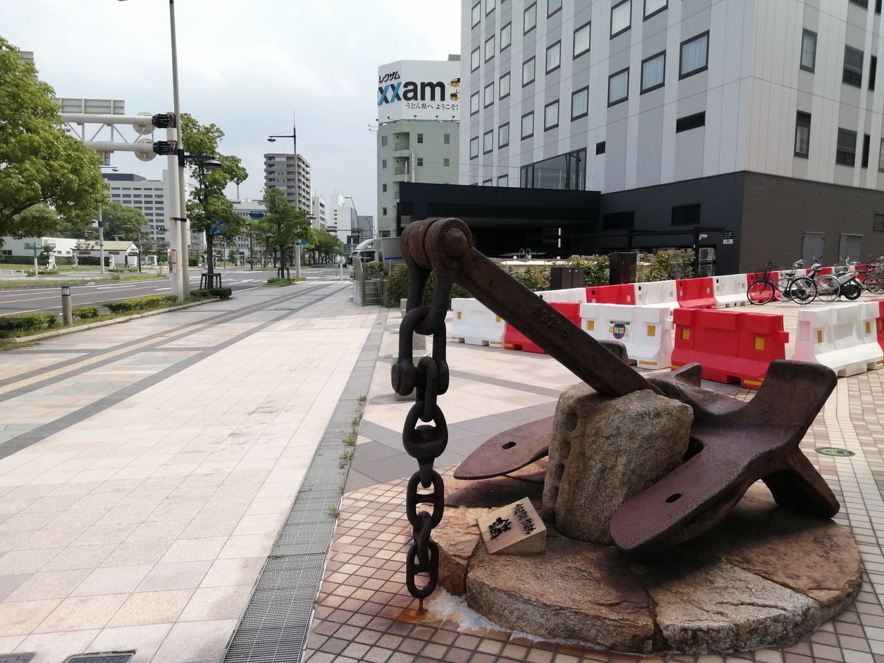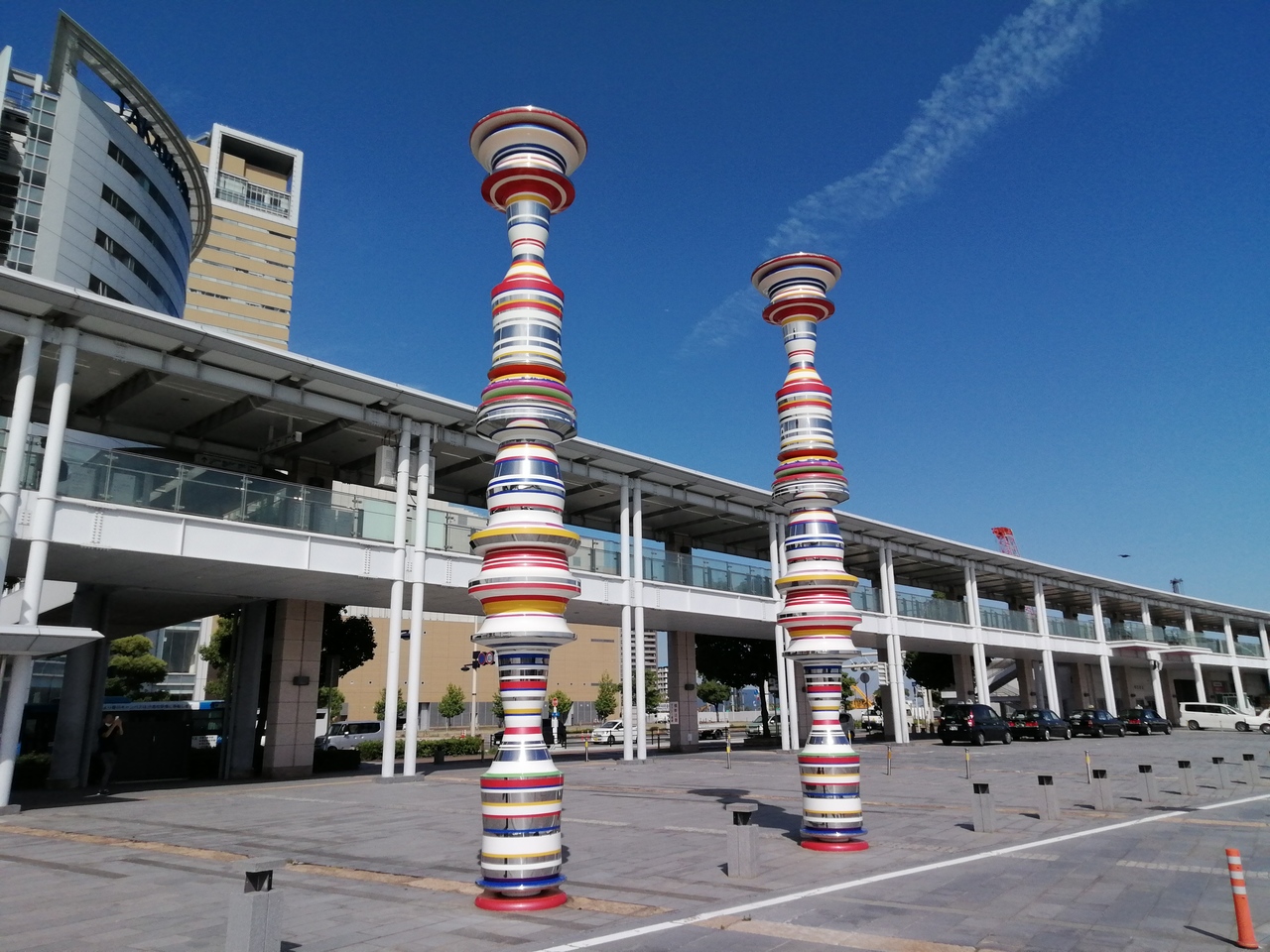 高松港にある2本のド派手な謎のオブジェです。その正体は…2010年の瀬戸内国際芸術祭時に設置された大巻伸嗣氏の作品。それ以来設置され続けられており、2022年の芸術祭の作品でもあります。高さは約8m、もはや瀬戸内国際芸術祭、いや高松港のシンボル的存在になりつつあります。