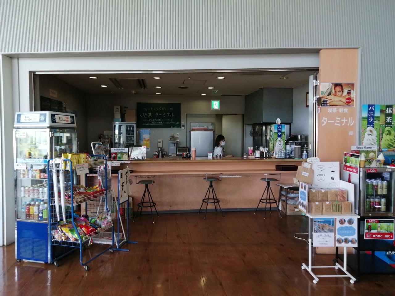 名前からしてここで離島への船のチケットが買えるものと思いきや…買えません。かつては買えたようです。待合いスペース風の空間からその名残りはうかがえますが、「喫茶軽食ターミナル」という店がぽつんとあるだけで寂しいところです。紛らわしいので名前を変えた方がいいと思うんですが…。