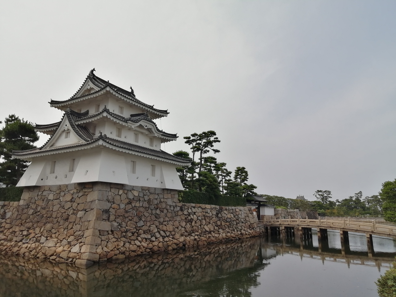 玉藻公園として整備されています。肝心の天守は現存せず、復元もされておらず、ただ土台の石垣が残るのみです。入場料200円なら許せるレベルだと思いますが、外の堀沿いをぐるりと回るのも一興かと思います。北側の月見櫓、水手御門、南西角の東之丸艮櫓など見どころはかなりあります。