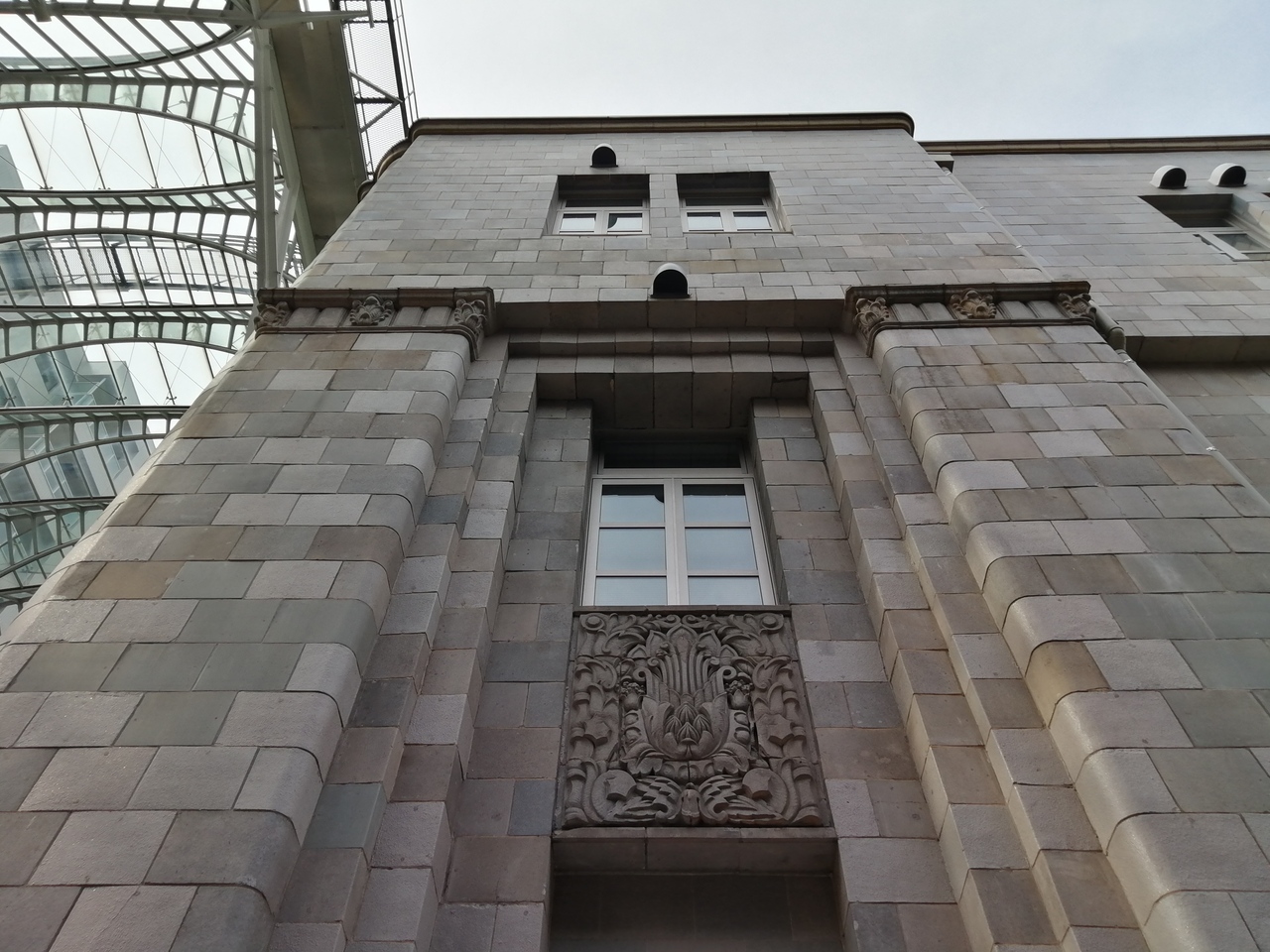 丸亀町壱番街前ドーム広場南側に建つ大正ロマンあふれるレトロで重厚な3階建ての建物。元々は2階建てだったようで大正15年(1926年)4月竣工、3階部分は後の昭和27年(1952年)増築されたようです。一見総石造りのように見えますが実は鉄筋コンクリート造りなのだとか。言われなければまったくわかりません。