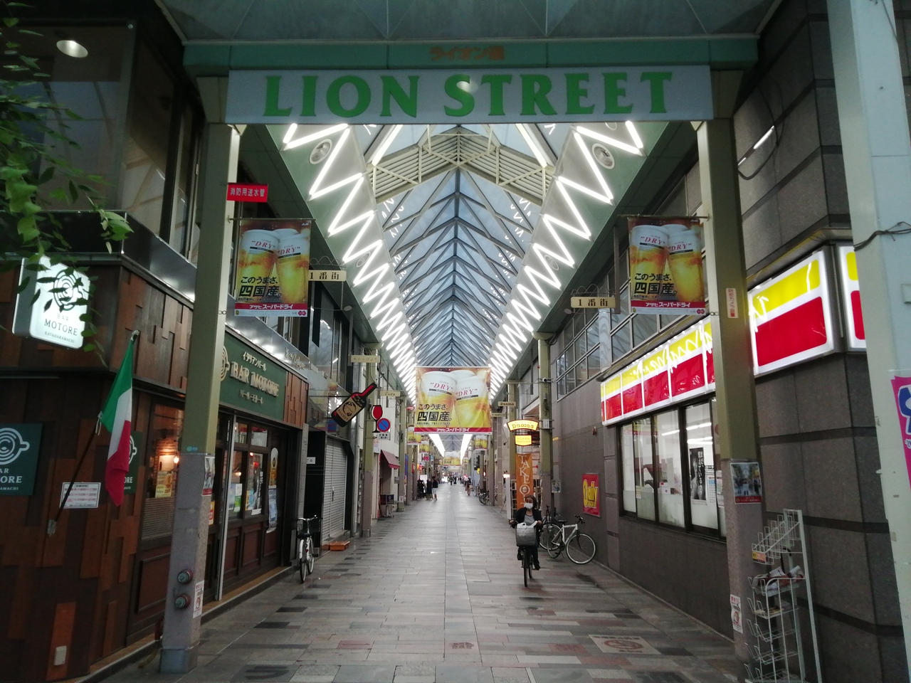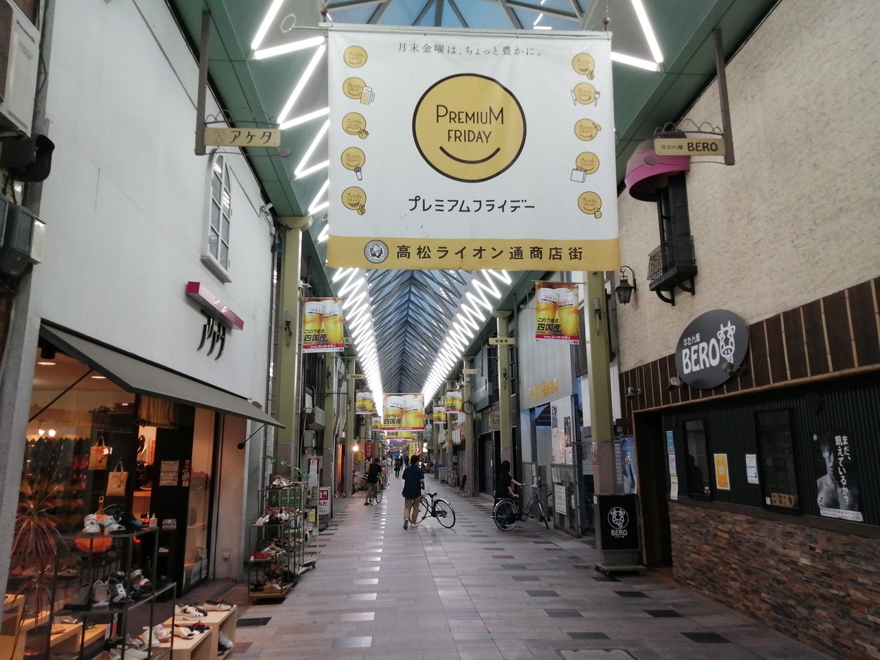 高松中央商店街の目抜き通り、丸亀町ー南新町ー田町と続く商店街の1本東側にあるアーケード商店街です。長さは約500m、通りの幅も狭くなり、ぐっとローカル感が増します。色々なお店が集まっていますが、目立つのは庶民的な飲み屋。安く飲みたいならこの通りです。きっと好みの店が見つかると思います。