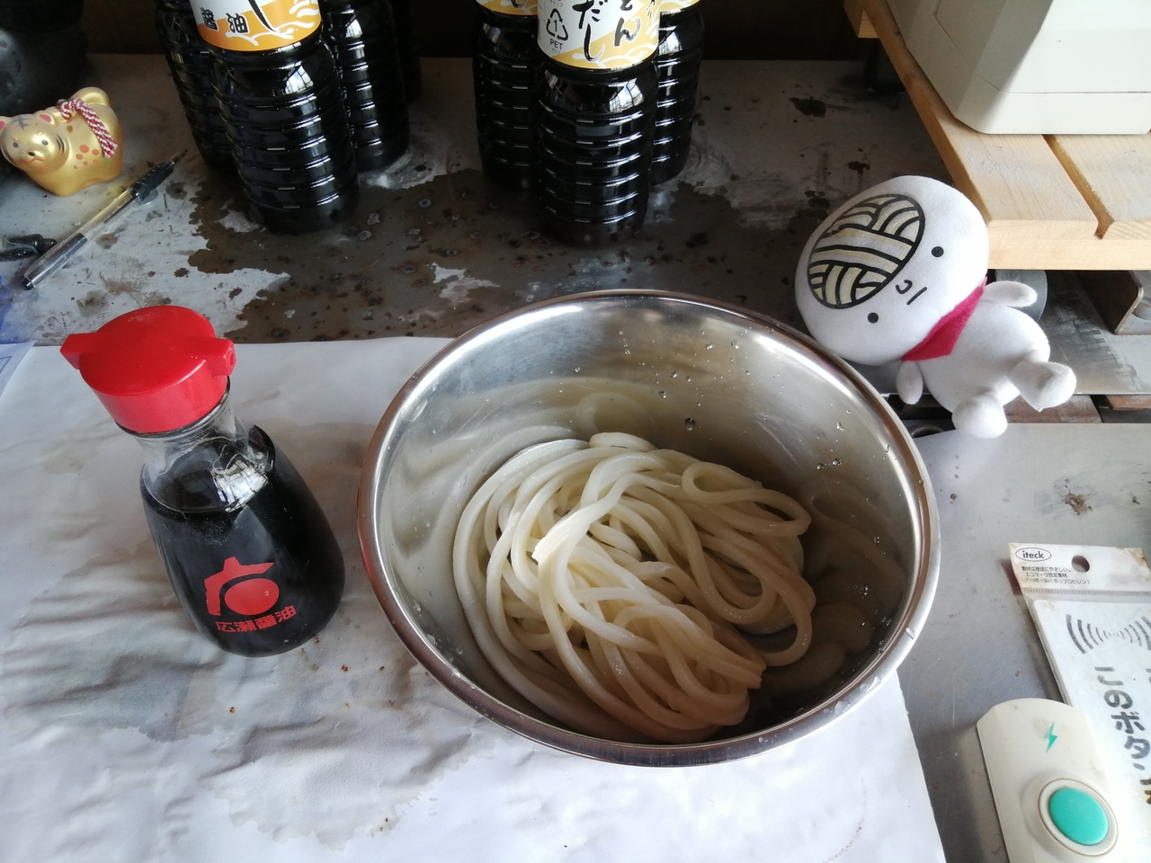 うーん、うまいと言えばうまいのですが、薬味なしだとやはり物足りませんね。けど麺を販売する製麺所なので仕方ありません。店で食べたい方は最低、容器と箸。そしてできれば薬味持参でどうぞ。