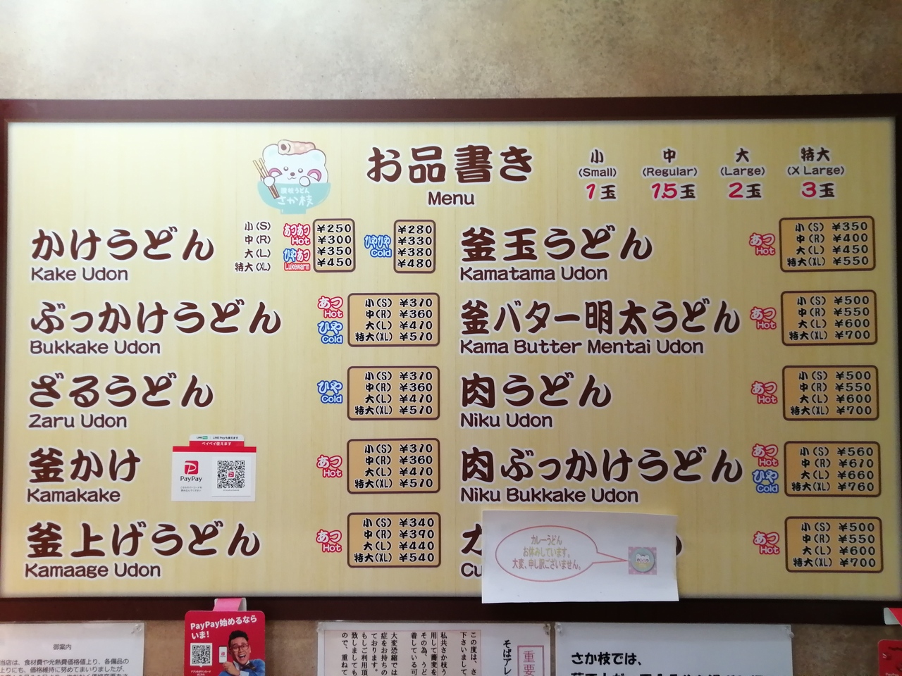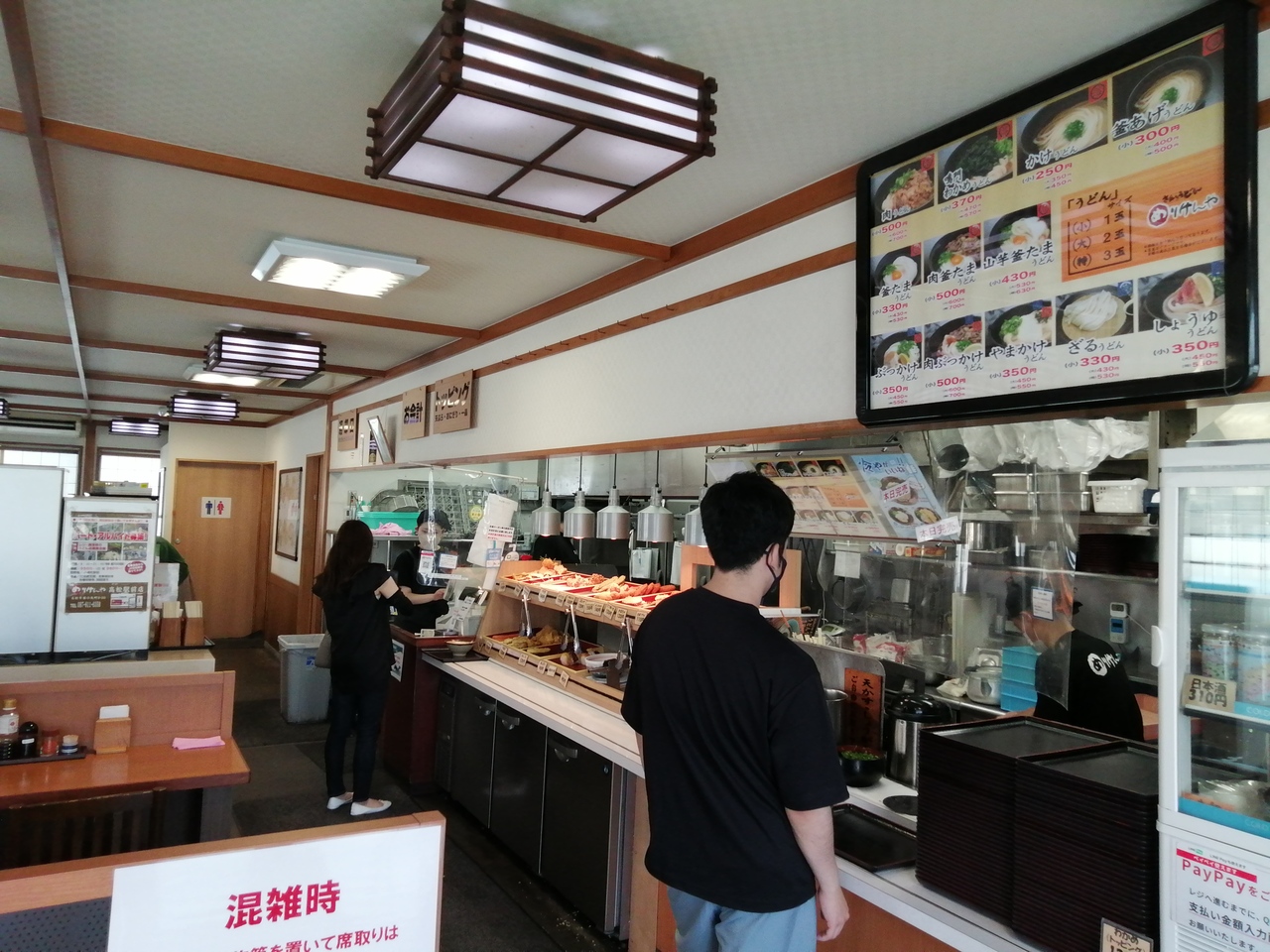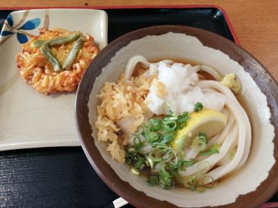 ぶっかけうどん小(350円)をオーダーし、野菜のかき揚げ(140円)を取り、支払い。PayPayが使えました。