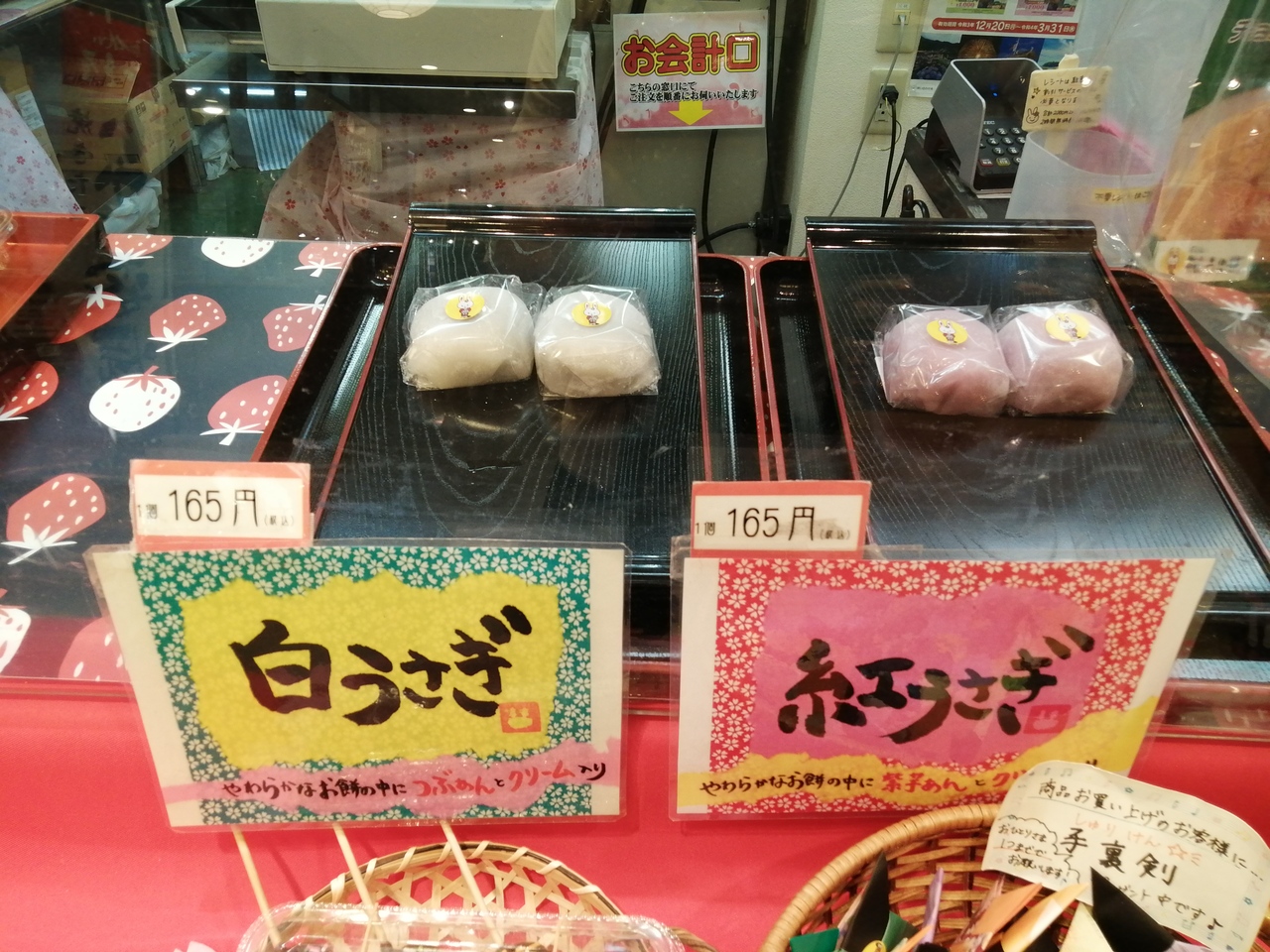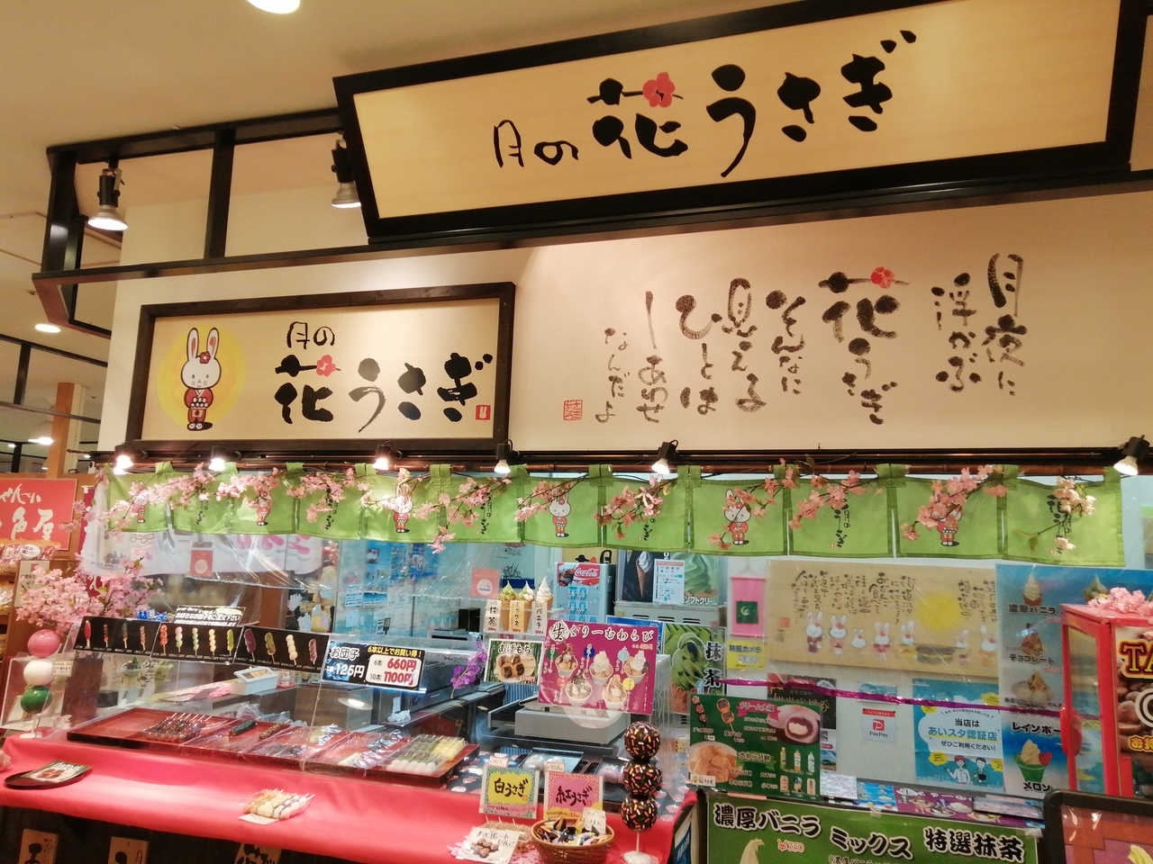 ラグーナ蒲郡、フェスティバルマーケット内にあるカジュアルな和菓子屋さんです。おさかな市場で食事した後のデザートを買いました。だんごが人気のようですが、この日は平日で客が少ないためか品ぞろえはいまいち。なので目に付いた「白うさぎ」(税込165円)を買ってみました。とろけるようにやわらかなお餅の中にはつぶあんとクリーム。すべてのバランスがよく、抜群においしかったです。おすすめです。