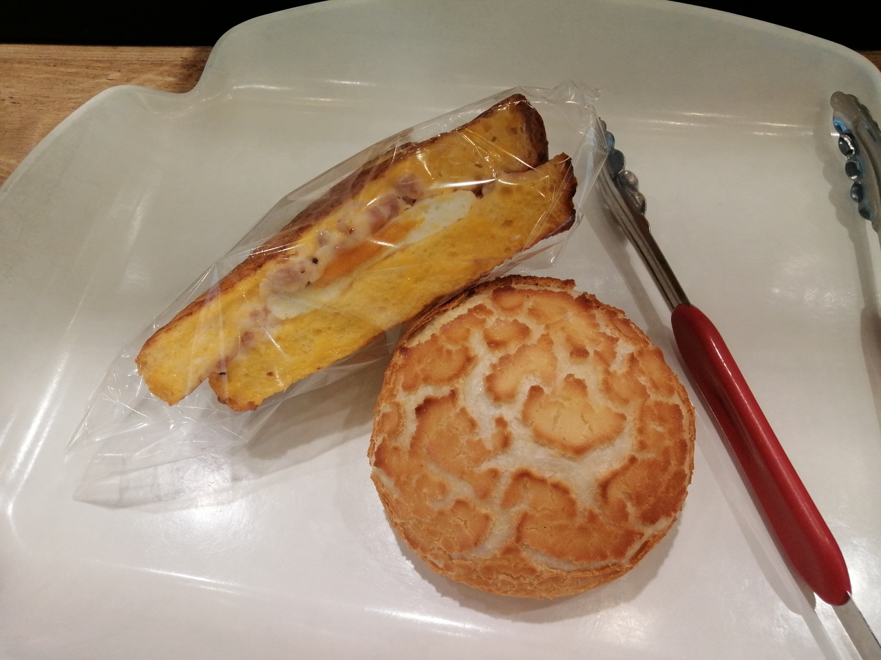 “チーズ…”はフランスパン生地にの中にチーズがたっぷり。オーブントースターで焼くとチーズがとろ~り溶けてとてもおいしい。まさにパンをチーズフォンデュしてる感じです。“クロック…”はマヨネーズの絡んだハムと目玉焼きをトーストで挟んだサンドイッチ。この組み合わせは間違いないおいしさです。朝食にぴったりのパンでした。- 旅行時期