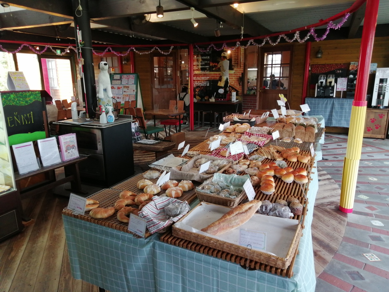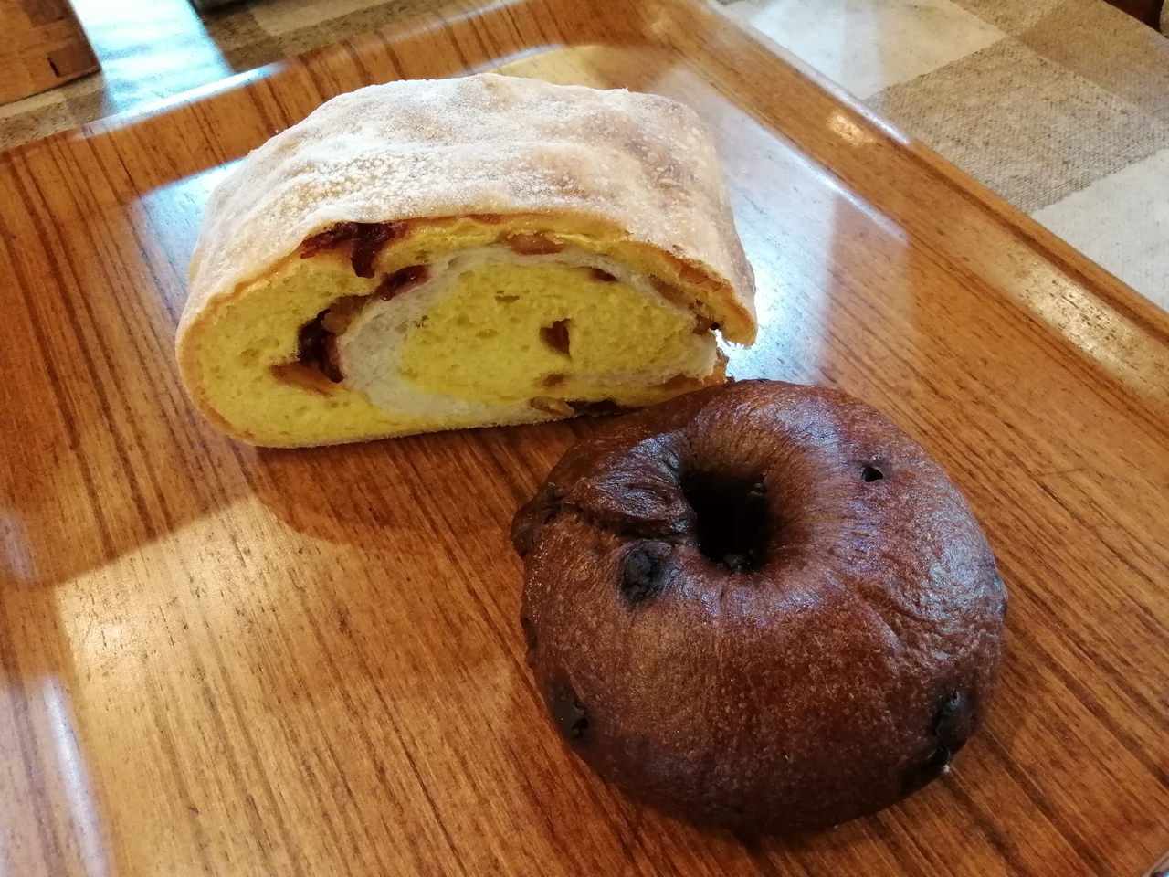 愛知県内に4店舗を展開するパン屋です。この幸田店が本店となります。メルヘンチックでかわいらしい外観で中はかなりゆったり目、居心地のよさそうなカフェスペースもあります。凝ったパンが多く、どれもおいしそう。悩みに悩み、「DEKA 爽やかオレンジ1/8」(税込320円)と「チョコベーグル」(230円)を購入。爽やかオレンジにはいよかんとゆずのピールとクランベリーが入っておりとってもおいしかったです。