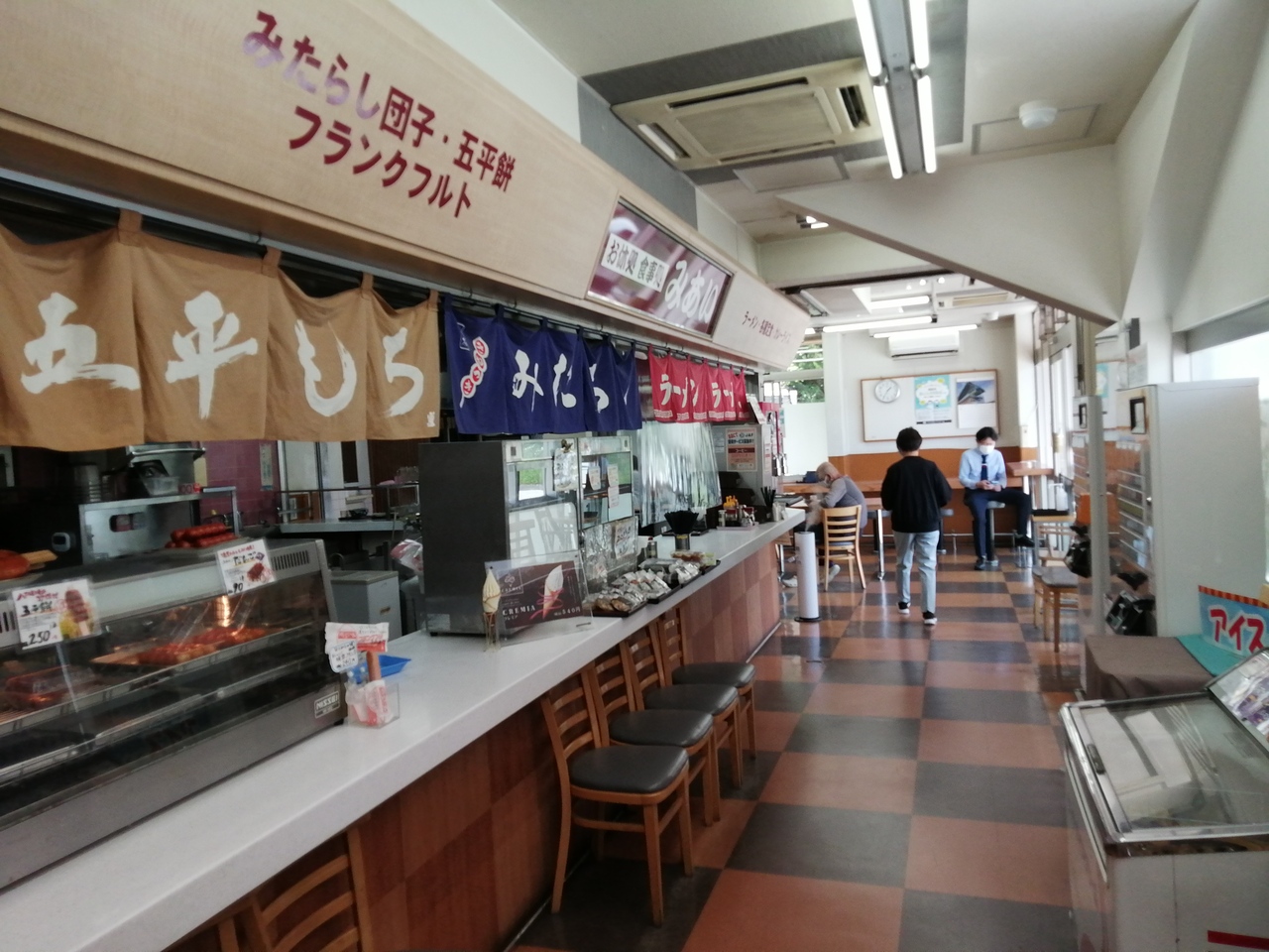 下り線と比べかなりこじんまりしたPAですが自販機コーナーとお土産がちょろちょろと軽食の食事処があります。- 旅行時期