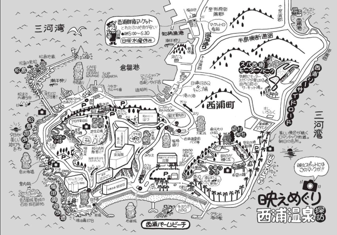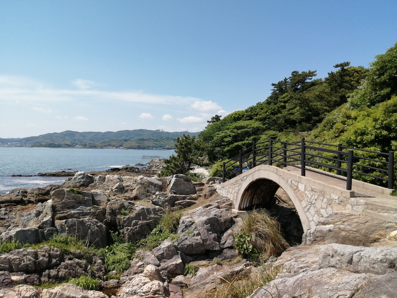 西浦半島先端の海沿いの磯場に作られている遊歩道です。とても風光明媚な場所で三河湾の大海原を眺めながら散策が楽しめます。