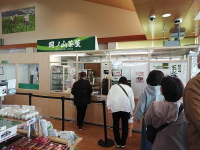 高速道路スタイルの国道23号線パイパス沿いにある道の駅ですが、名古屋から蒲郡方面への車線からしか入れません。誘導路工事の予算不足のためかもしれませんがちょっともったいないと思います。“下道”の一般道路からでも利用できます。地元の農産物直売所や抹茶を使ったご当地お土産が充実しています。「岡ノ山茶屋」というソフトクリームスタンドには行列が…。おそらく皆さん抹茶ソフト狙いだと思います。