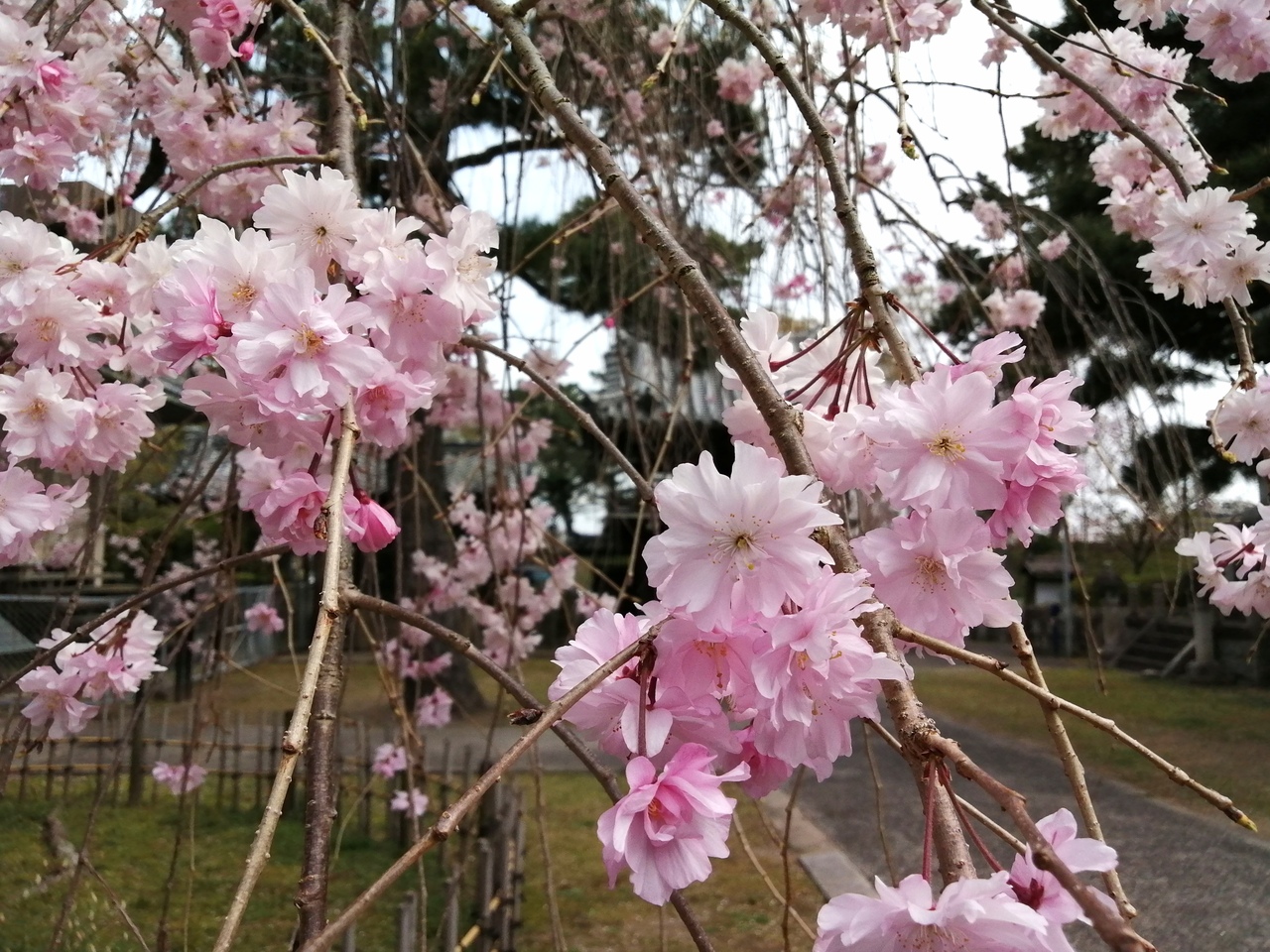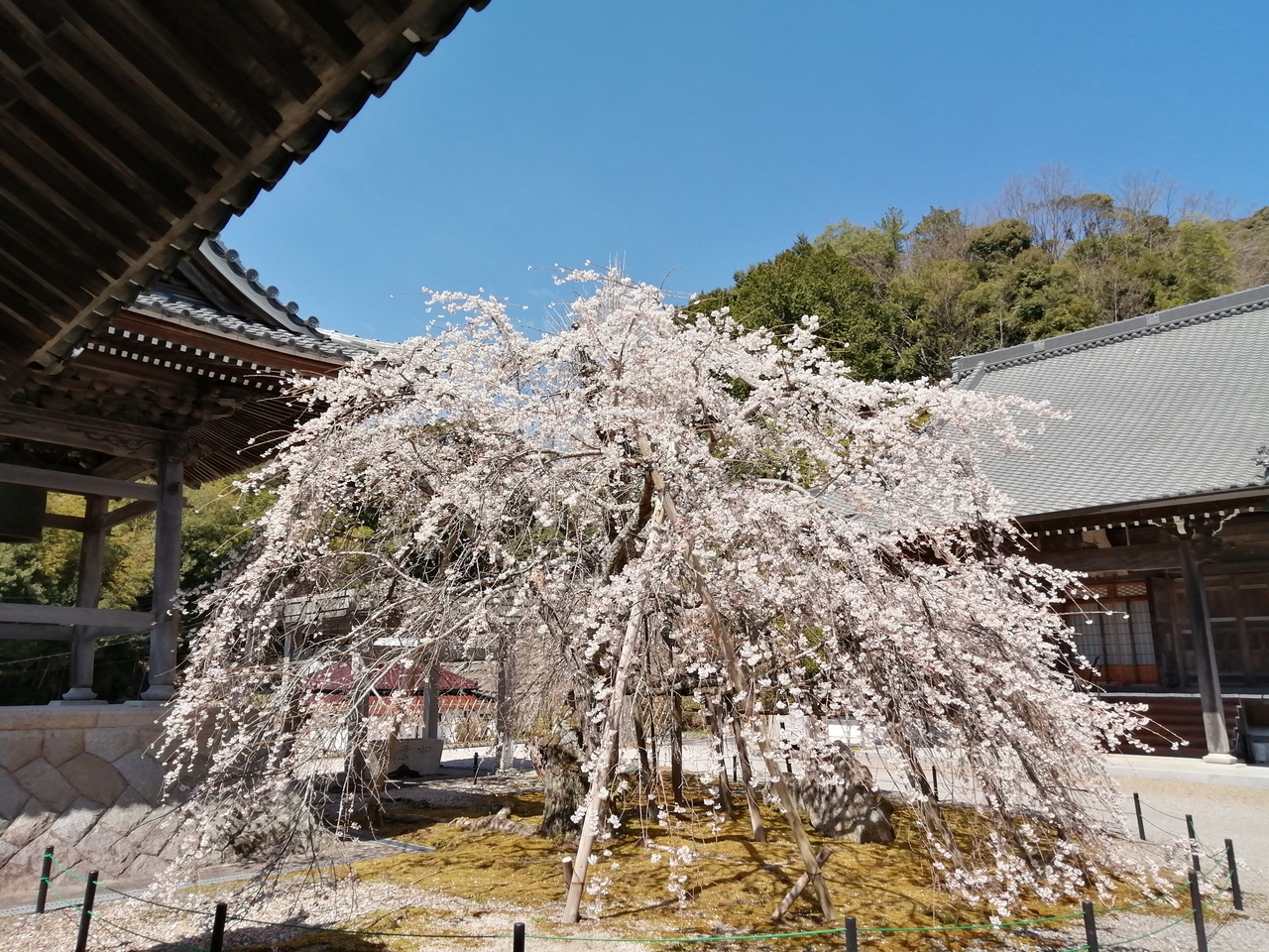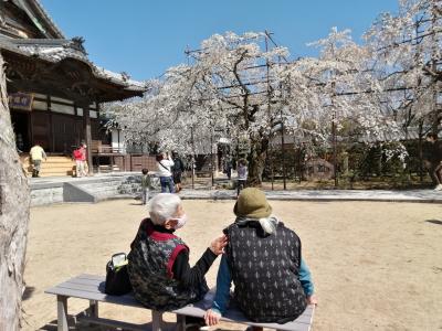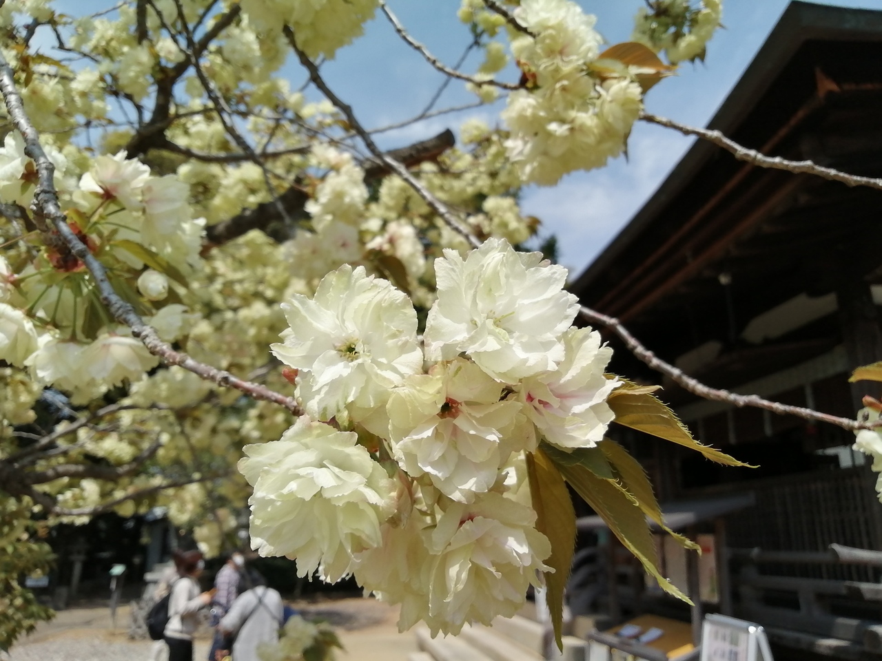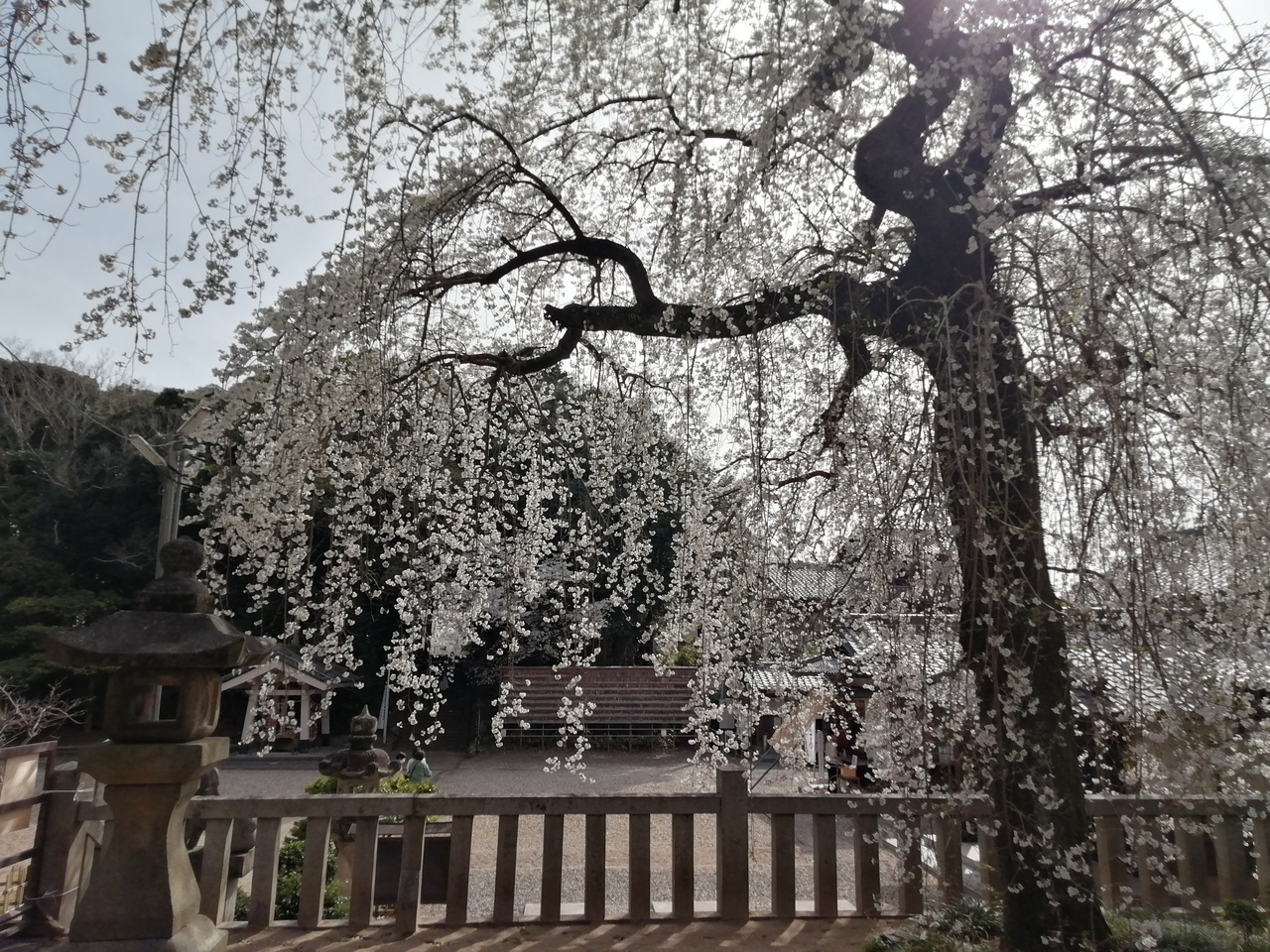 樹齢約300年のしだれ桜があります。やや見頃のピークは過ぎたかなと思いつつ、訪れてみると…すでに花はなく新葉のみ。でもなんか様子がおかしい。山門前で露店を出している方に尋ねると、何者かにのこぎりで幹を切られ今年は咲かなかったという。幹周りをぐるりと一周切られていたそうです。こんな酷いことをする人がいるなんて驚きです。ちょっと怖くなりました。もちろん警察に通報し地元のニュースにもなりました。現在は樹木医に治療してもらっているようです。