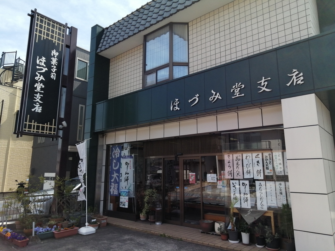 “西尾銘菓”の「茶ぼーず」を買うべく訪れましたがショーケースを覗いても見当たらない。店の方に尋ねると「うちでは扱っていません」と。はい?そんなはずはありません。ちゃんと調べてきましたから…。話を聞き、理由がわかりました。“穂積堂”と“ほずみ堂”の違いのようです。てっきり同じ店だと思っていました。身内繋がりのようですが、経営は別とのこと。まぁ複雑な大人の事情というやつでしょうか…。ちなみに“支店”とありますが“本店”はなく、この店1軒だけのようです。紛らわし過ぎる…。