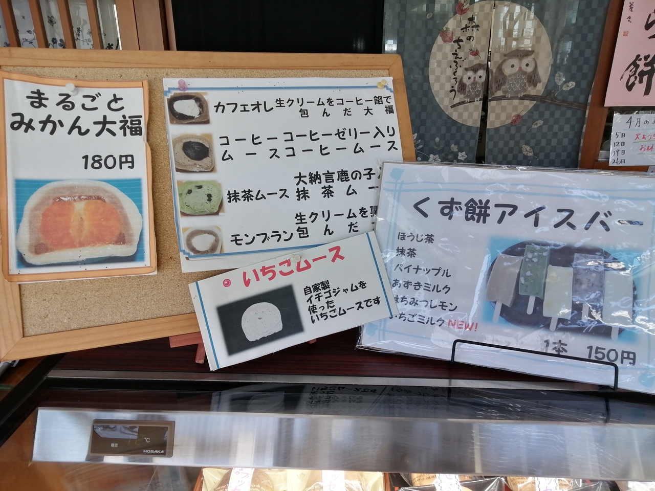 せっかくなのでおすすめされた「抹茶ムース」(税込130円)を買ってみました。とろけるような羽二重餅の中には抹茶ムースと大納言小豆。かなりおいしかったです。一口サイズでしたが…。- 旅行時期