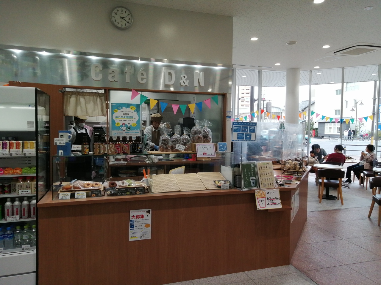 安城市図書館などのある複合施設「アンフォーレ」1Fに入っているカフェです。カフェといってもお弁当やドーナツ、ドリンクなどを売る軽食スタンドのような感じ。イートインスペースもあります。