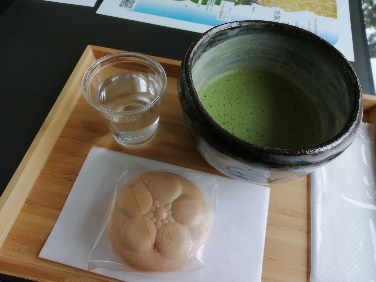 で、代わりに「お抹茶セット」(税込700円)をいただくことに。ごくありふれた最中と抹茶のセットでした。