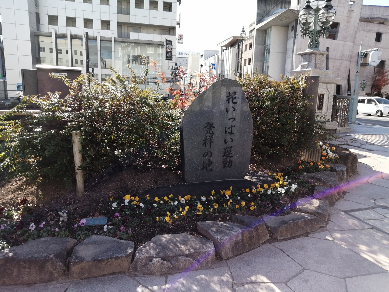 松本城へ通じる大名町通りの千歳橋北側のたもとにあります。「花いっぱい運動」とは、花を植えることで町の景観を良くする目的で始められた運動で、長野県松本市が発祥の地とのこと。その後は全国に広がり、多くの自治体で採用されているようです。ちょっと調べてみたら私の住む自治体でも関連イベントも含め、様々な取り組みが行なわれていました。「花いっぱい運動」を知るきっかけになってよかったと思います。