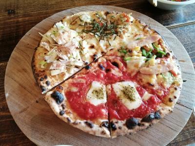 大人1人1500円の食べ放題(サラダ、ドリンク付き)を友人と2人でトライ。ピザは8種類。1枚単位でオーダーですが、クオーターでのトッピングが可能。通常は直径30cmのビッグサイズですが、いろいろ食べたかったので小さめのサイズでオーダーしました。普通のピザよりもかなり薄かったので2人で4枚食べ、腹いっぱい。