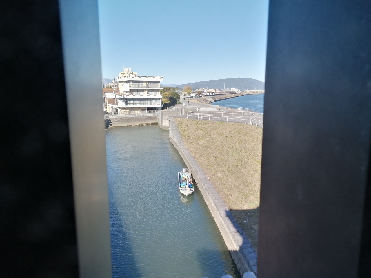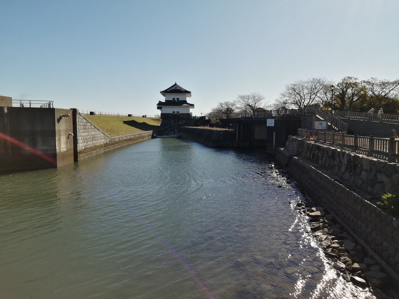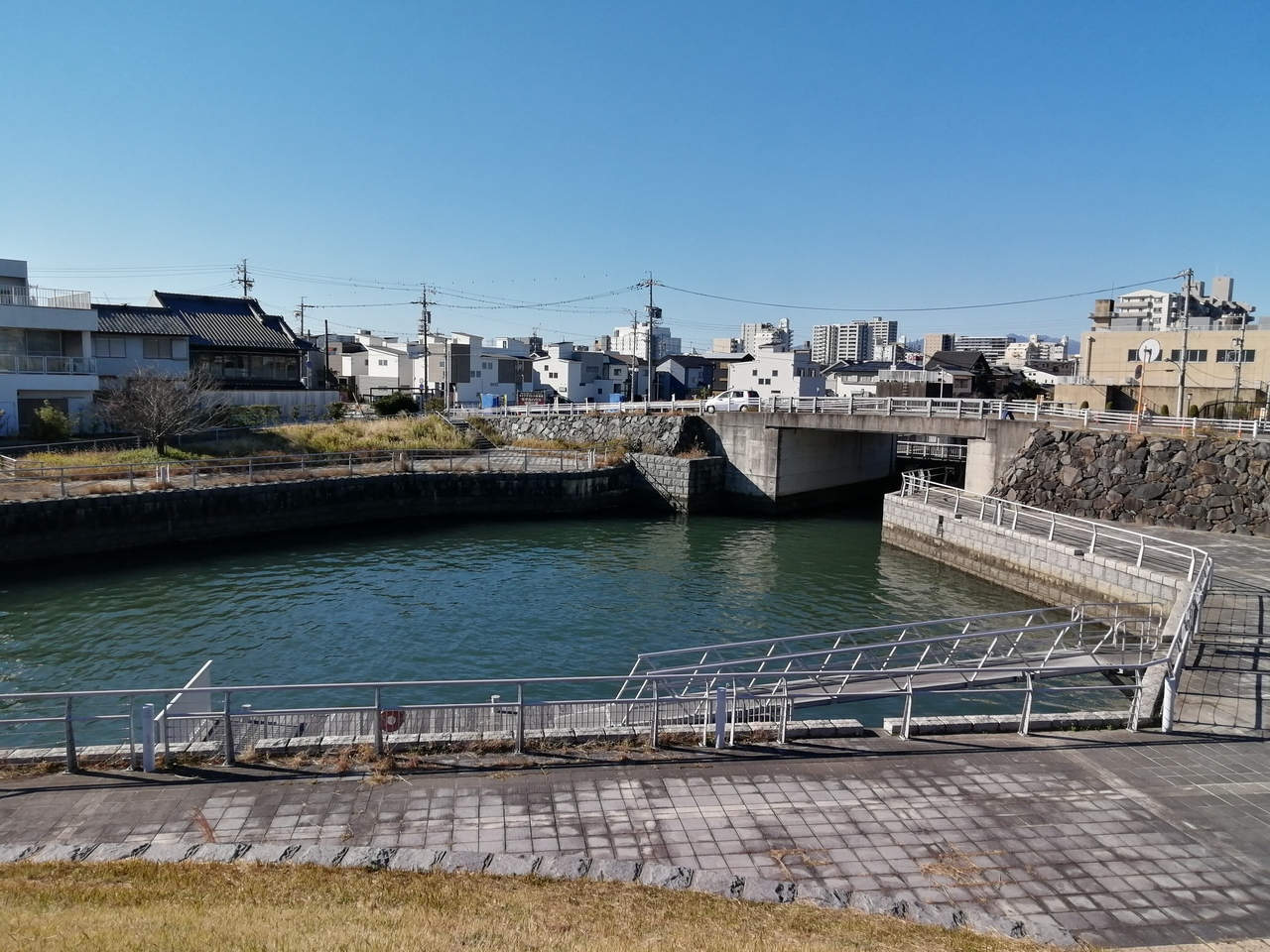 柿安本店前の駐車場に隣接する芝生広場です。「柿安コミュニティーパーク」と名前が変わっています。長良川(揖斐川)に面しており開放感抜群でとても気持ちのよい広場です。この日は晴れた日曜の午後ということもあり、子供連れの家族がボール遊びなどをしていました。
