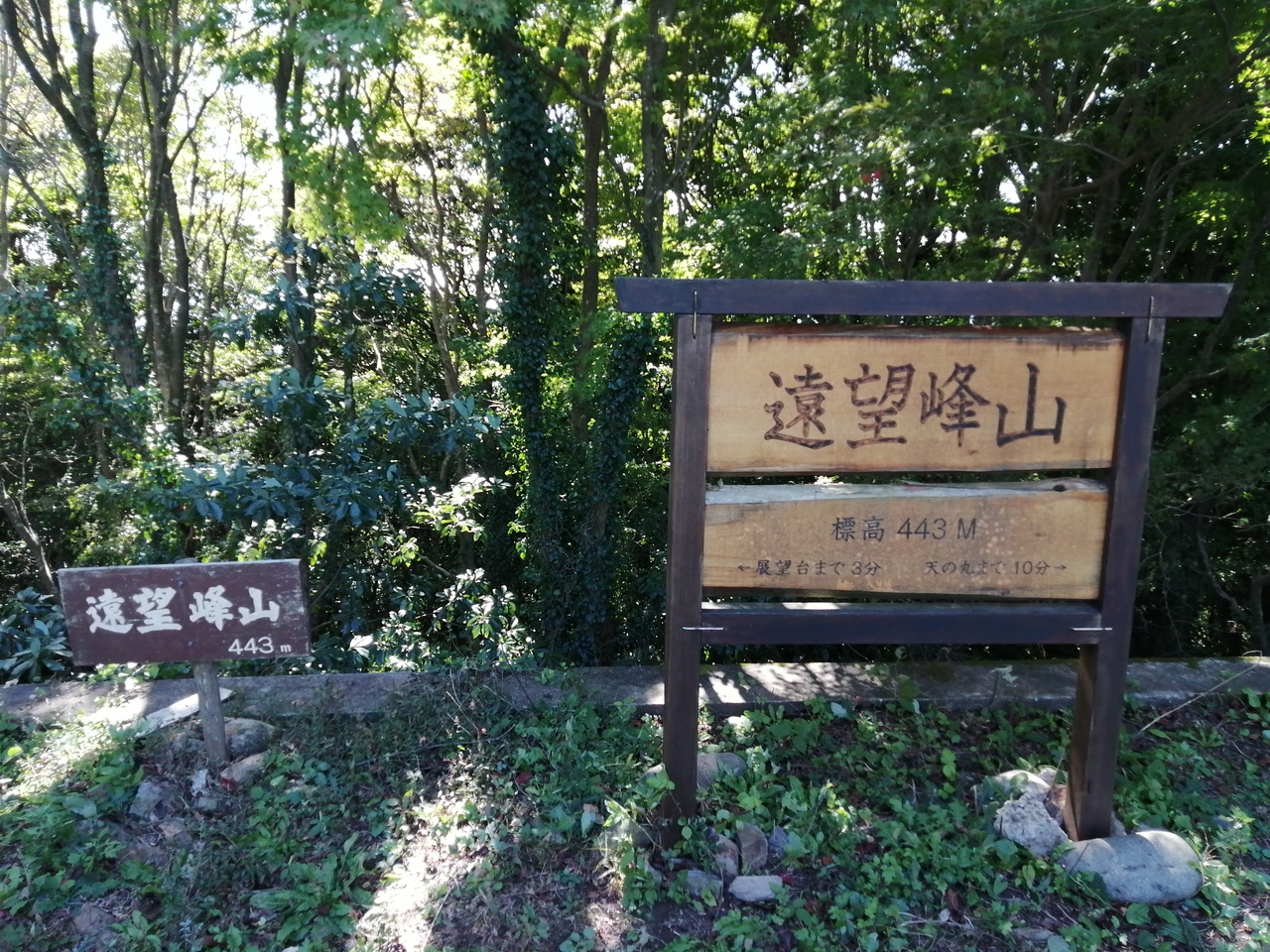 不動ヶ池公園から歩いて遠望峰山山頂を目指しました。キャンプ場、不動ヶ滝を抜けて舗装道路へ。その後現れる「風の谷の庵・天の丸」のホテルの看板を指示どおり右折なのですが、遠望峰山の看板は無かったので私は300mほど直進してしまい、引き返して来ました。そして山頂へはホテル敷地入口脇にある階段を登っていくのですが、登山アプリの地図を見てなんとかルートを発見。道中、遠望峰山の案内看板が全くないので下調べしておかないと迷うかもしれません。