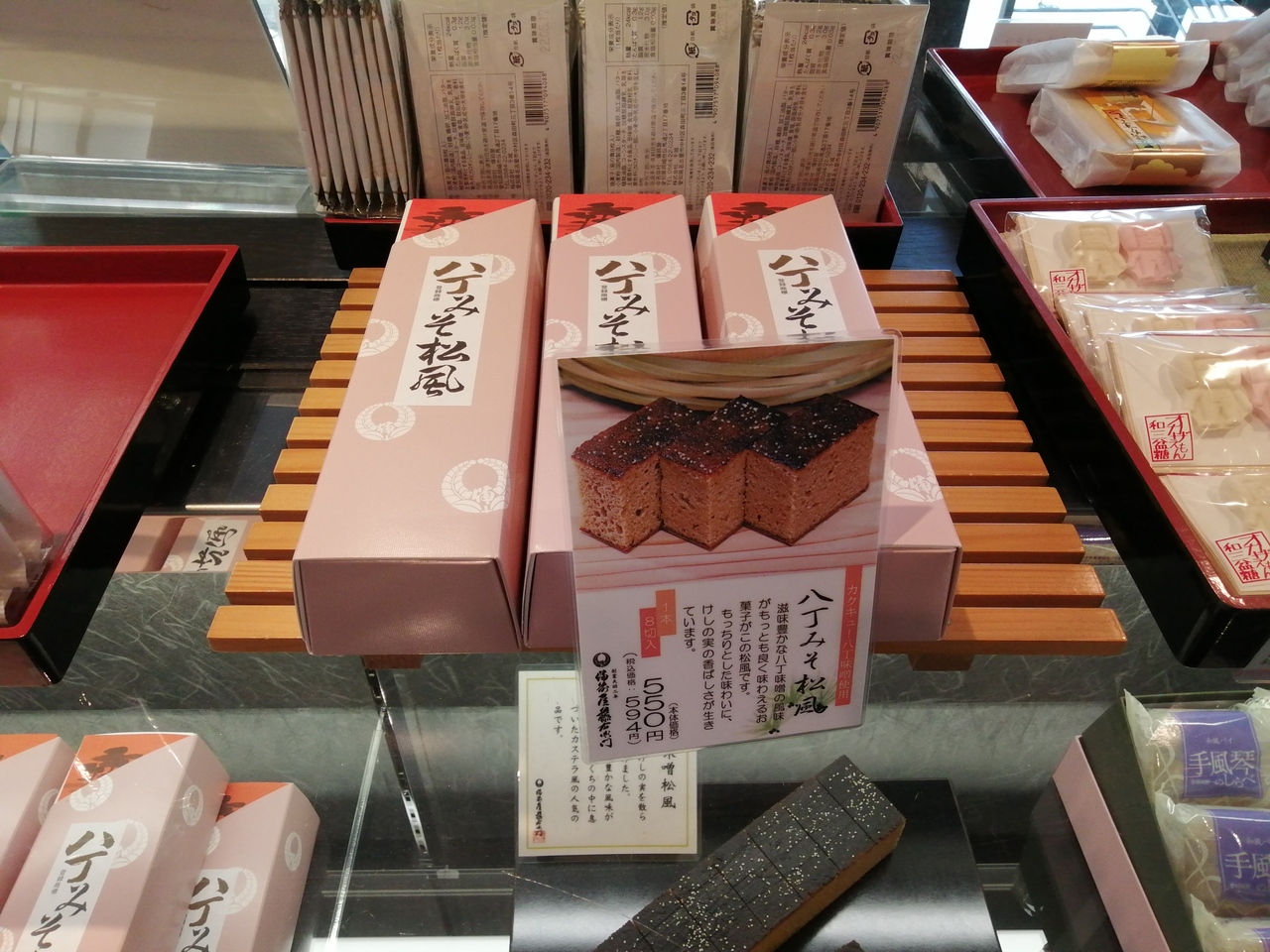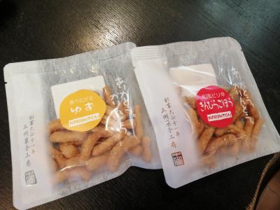 通称でしょうか、お店の名前は「ありがとう。かりんとう。」となっています。名前のとおり“かりんとう”の専門店です。レギュラーだけでも12種類、月替りの限定品などもあるようです。求めやすいプチサイズが100円で売られているのもうれしいところ。しかし、これだけ種類があるとどれにしようか迷ってしまいます。なので人気No.1とポップの付いた「きんぴらごぼう」とNo.2の「ゆず」を購入。どちらもイケます。カクキューの八丁味噌を使った「ねぎ味噌」なんかもありました。そもそも、かりんとうって固くてねちょねちょしていて歯にくっつくモノだと思っていましたが、ココは軽い食感でサクサク食べられる。かりんとうのイメージが変わりました。