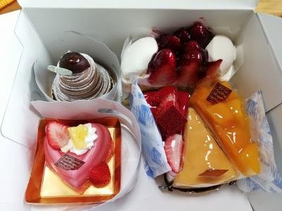 クリスマス用のケーキを買いに行きました。買ったのはホールの“クリスマスケーキ”ではなく、普段から店頭に並んでいる普通のカットケーキなど。“普通”といってもココのもは種類も多く、どれもハイクオリティー。計6種類7点を購入。